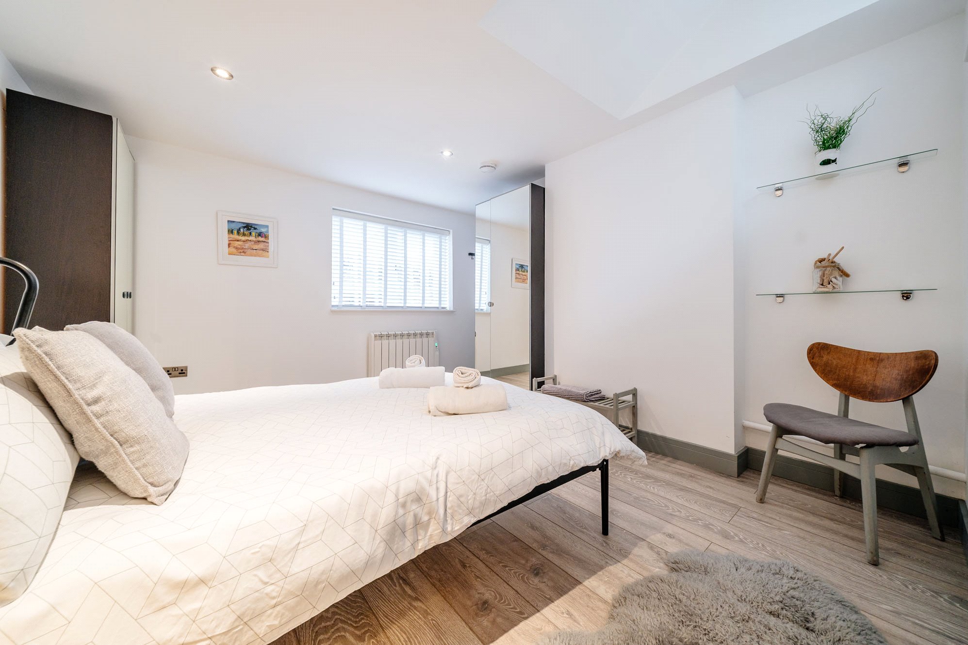 The comfortable double bedroom offers a peaceful retreat, while the contemporary shower room, fitted with an electric shower and modern fittings, completes the accommodation. Throughout, the property benefits from electric heating, double glazing, and a light, airy finish that enhances its sense of space.