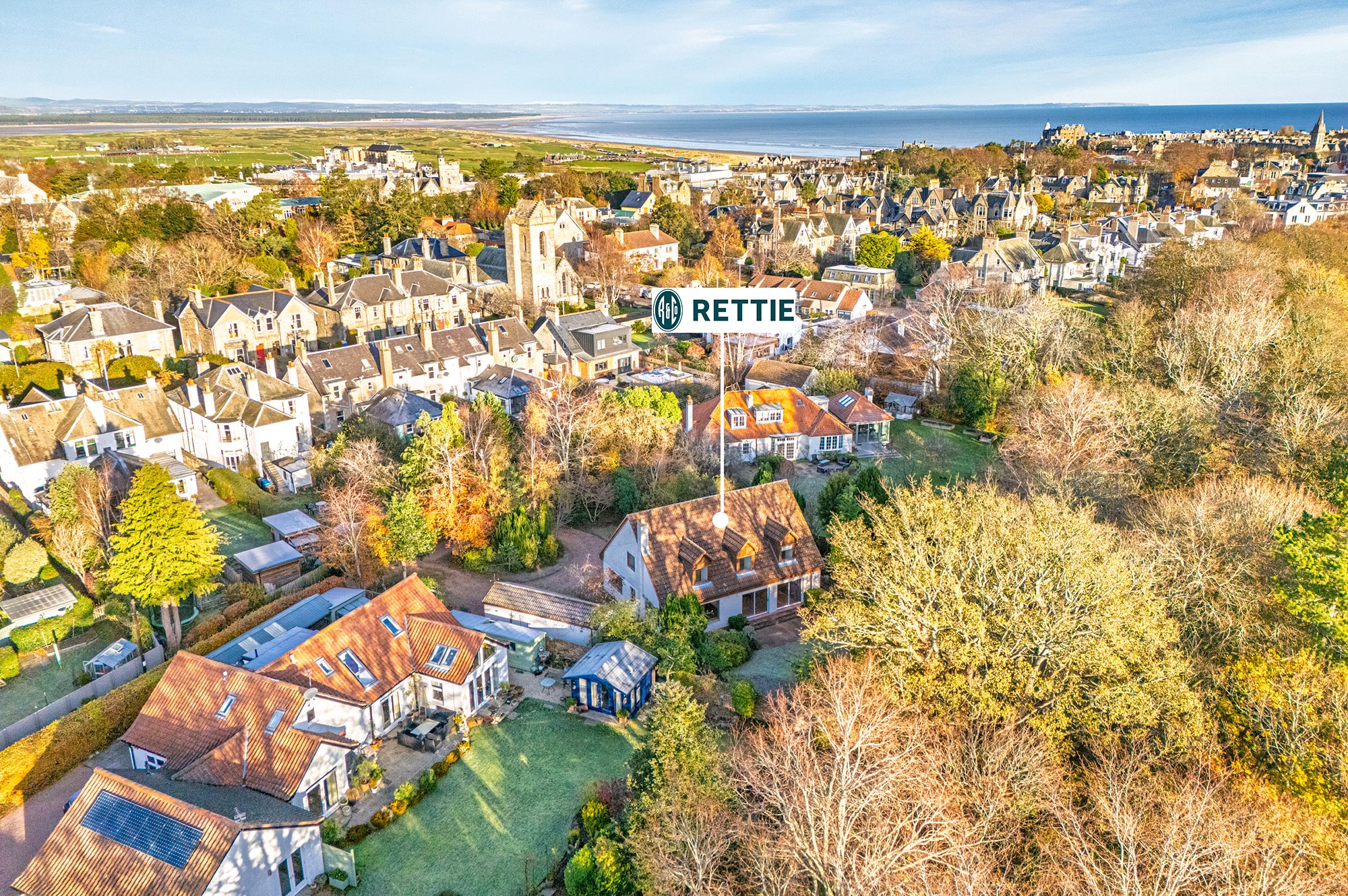 Surrounded by leafy gardens, The Roundel enjoys exceptional privacy, with a detached garage and driveway providing ample off-street parking. Its combination of a tranquil woodland-edge setting and close proximity to the town centre makes this a rare opportunity to acquire a superb family home in an outstanding St Andrews location.