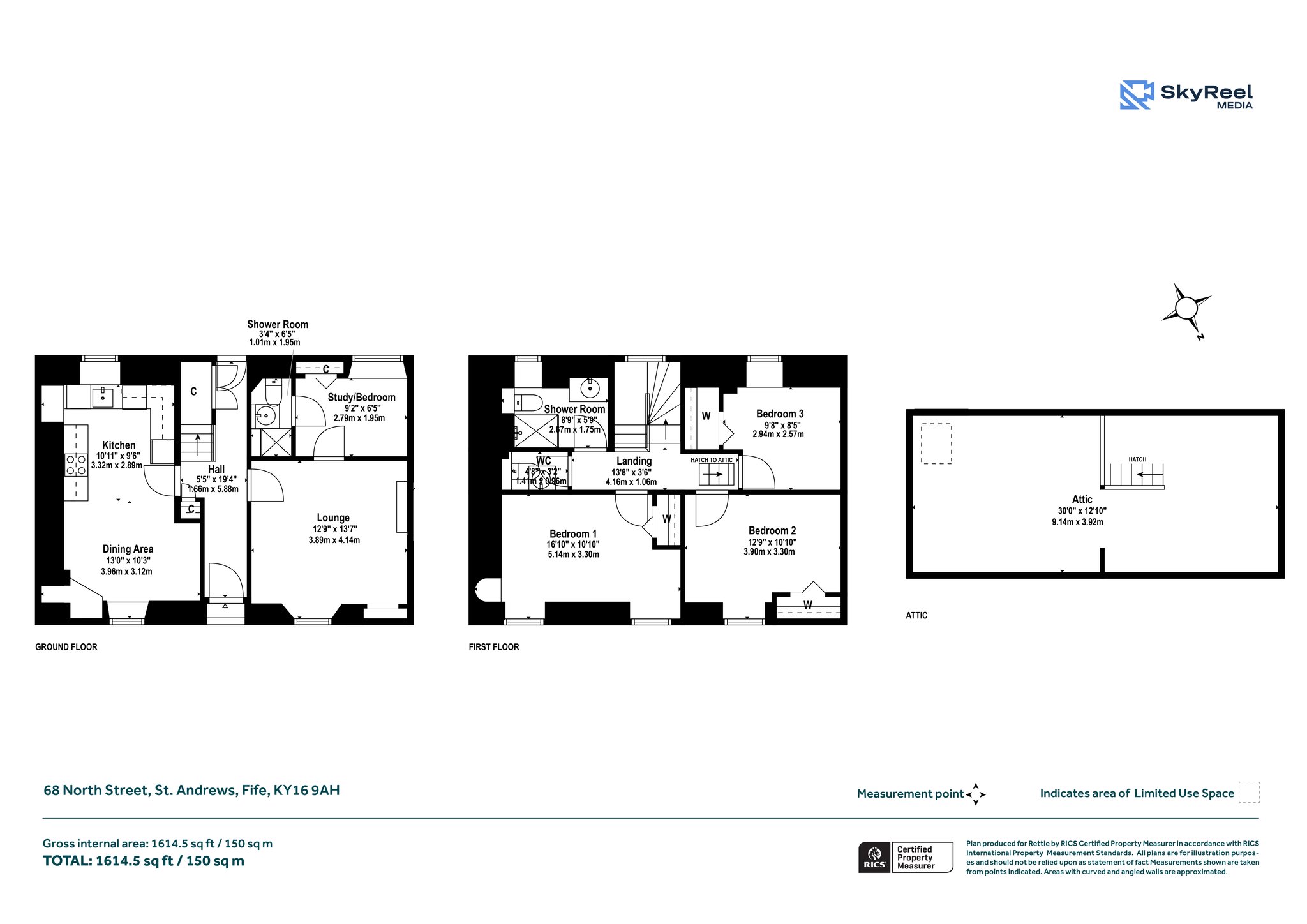 All Rettie floorplans are drawn to RICS standard. The text, photographs and plans are for guidance only and are not necessarily comprehensive and it should not be assumed that the property remains as photographed. Any error, omission or mis-statement shall not annul the sale or entitle any party to compensation or recourse to action at law. It should not be assumed that the property has all necessary planning, building regulation or other consents, including for its current use. Rettie & Co. & Rettie LLP’s have not tested any services, equipment or facilities. Purchasers must satisfy themselves by inspection or otherwise and ought to seek their own professional advice.