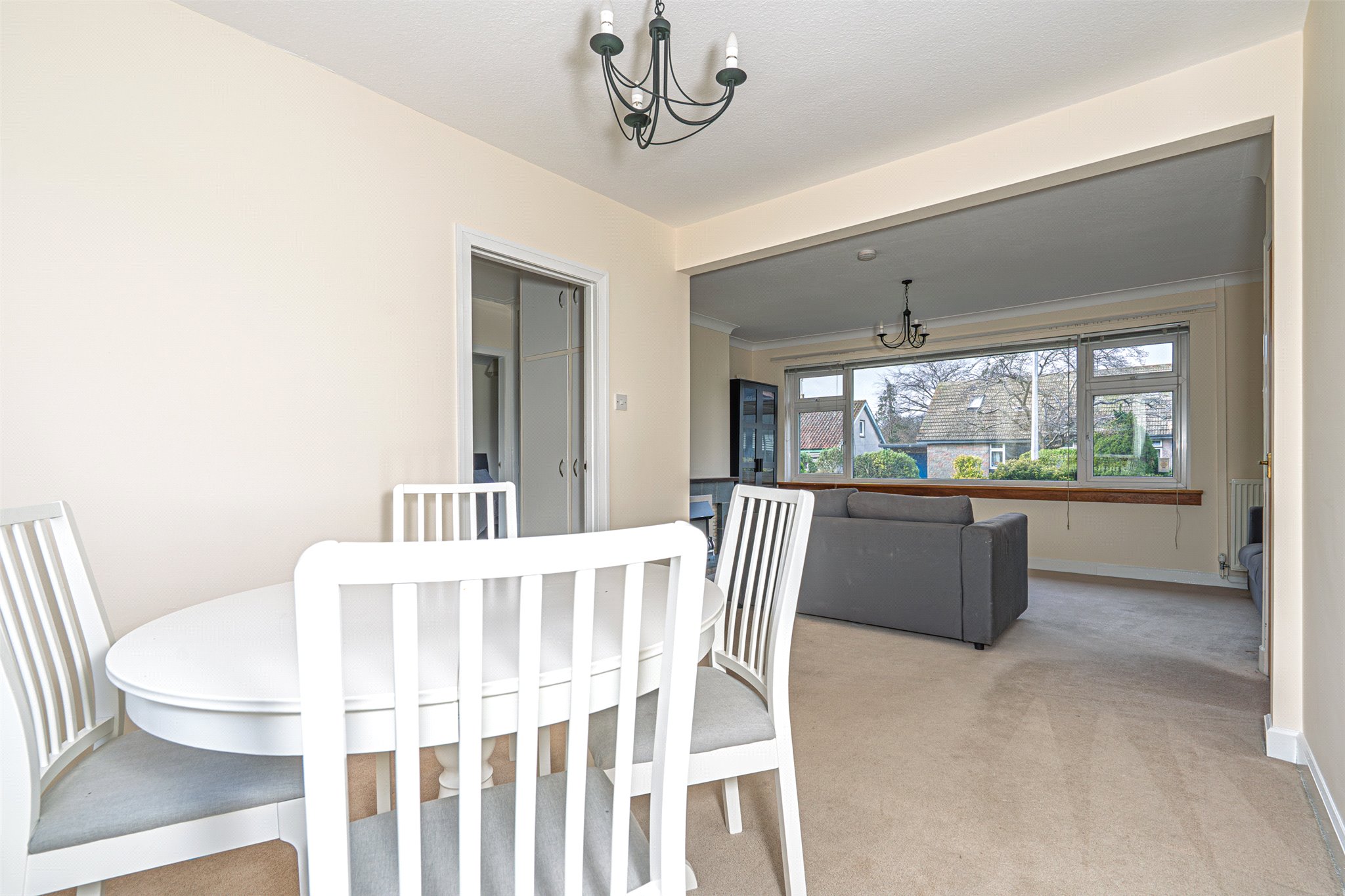 The open-plan living, dining and kitchen area forms the heart of the home, featuring a focal fireplace and direct access to the rear patio and garden. An inner hall leads to two well-proportioned double bedrooms, with bedroom one benefitting from a built-in wardrobe. The property also features a modern shower room and a separate WC, providing added flexibility and convenience. The inner hall also provides access, via a Ramsay-style ladder, to a spacious, floored and partially panelled attic with lighting, offering excellent additional storage as well as strong conversion potential (subject to planning).