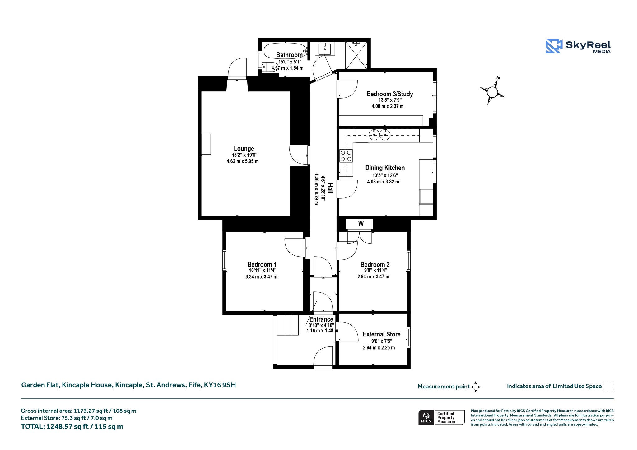 All Rettie floorplans are drawn to RICS standard. The text, photographs and plans are for guidance only and are not necessarily comprehensive and it should not be assumed that the property remains as photographed. Any error, omission or mis-statement shall not annul the sale or entitle any party to compensation or recourse to action at law. It should not be assumed that the property has all necessary planning, building regulation or other consents, including for its current use. Rettie & Co. & Rettie LLP’s have not tested any services, equipment or facilities. Purchasers must satisfy themselves by inspection or otherwise and ought to seek their own professional advice.
