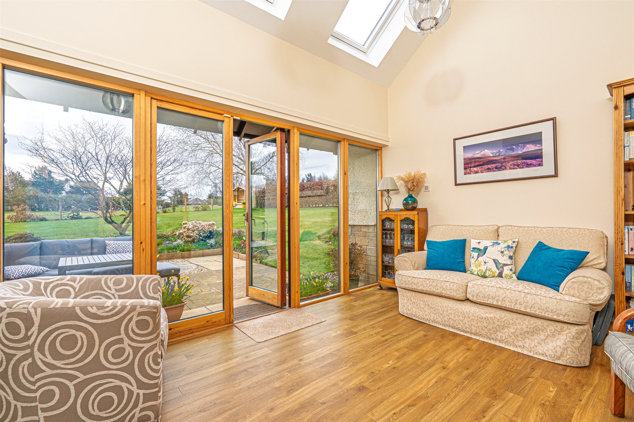 • Sun room with Velux windows and French doors to the rear garden
