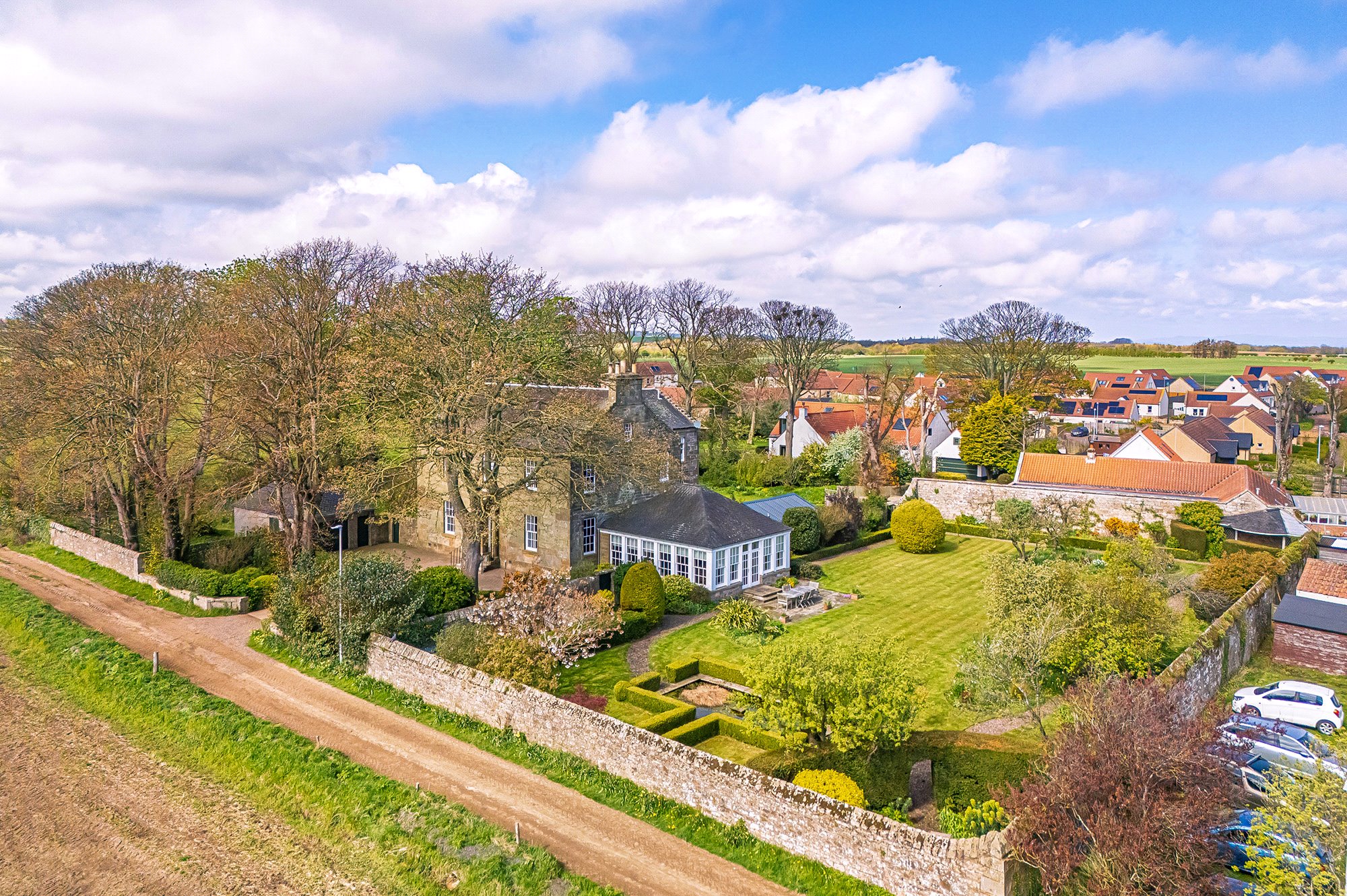 Believed to date from the mid-1800s and formerly a manse, Kirk House is a handsome and substantial Category B listed semi-detached period home, set within beautiful, established gardens at the edge of the desirable coastal village of Kingsbarns. Constructed of stone beneath a slate roof, the property retains a wealth of charming period features while benefiting from sensitive upgrading and an impressive, light-filled garden room extension, resulting in flexible and elegant accommodation.