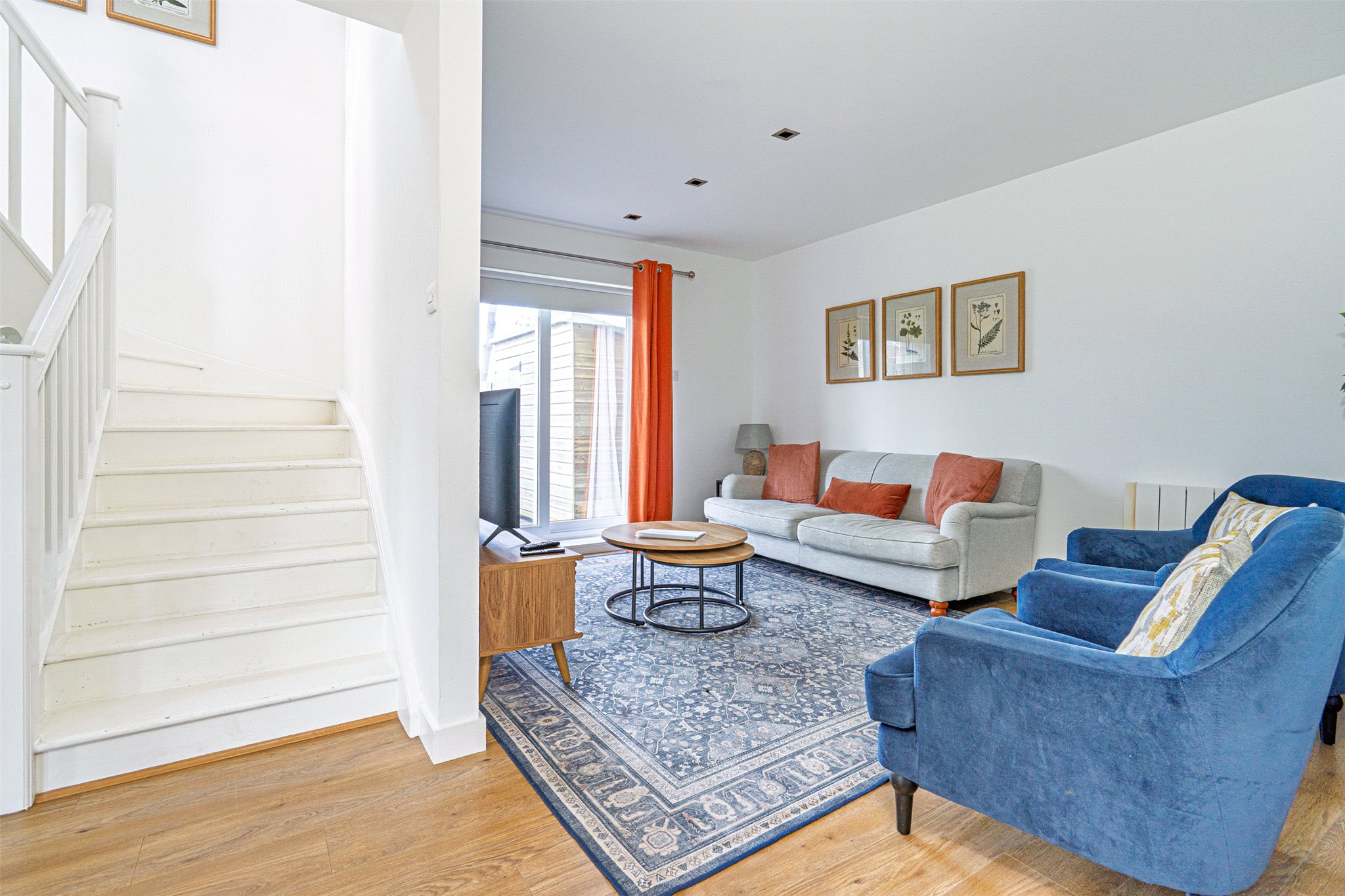 Internally, the cottage is finished in a clean, neutral palette throughout, creating a bright and welcoming atmosphere. The ground floor accommodation centres around a comfortable open-plan lounge and dining area, which enjoys excellent natural light and features sliding doors opening directly onto the enclosed rear garden, ideal for both everyday living and entertaining. The adjoining kitchen is fully equipped with modern integrated appliances and an electric hob, offering a practical and efficient workspace.