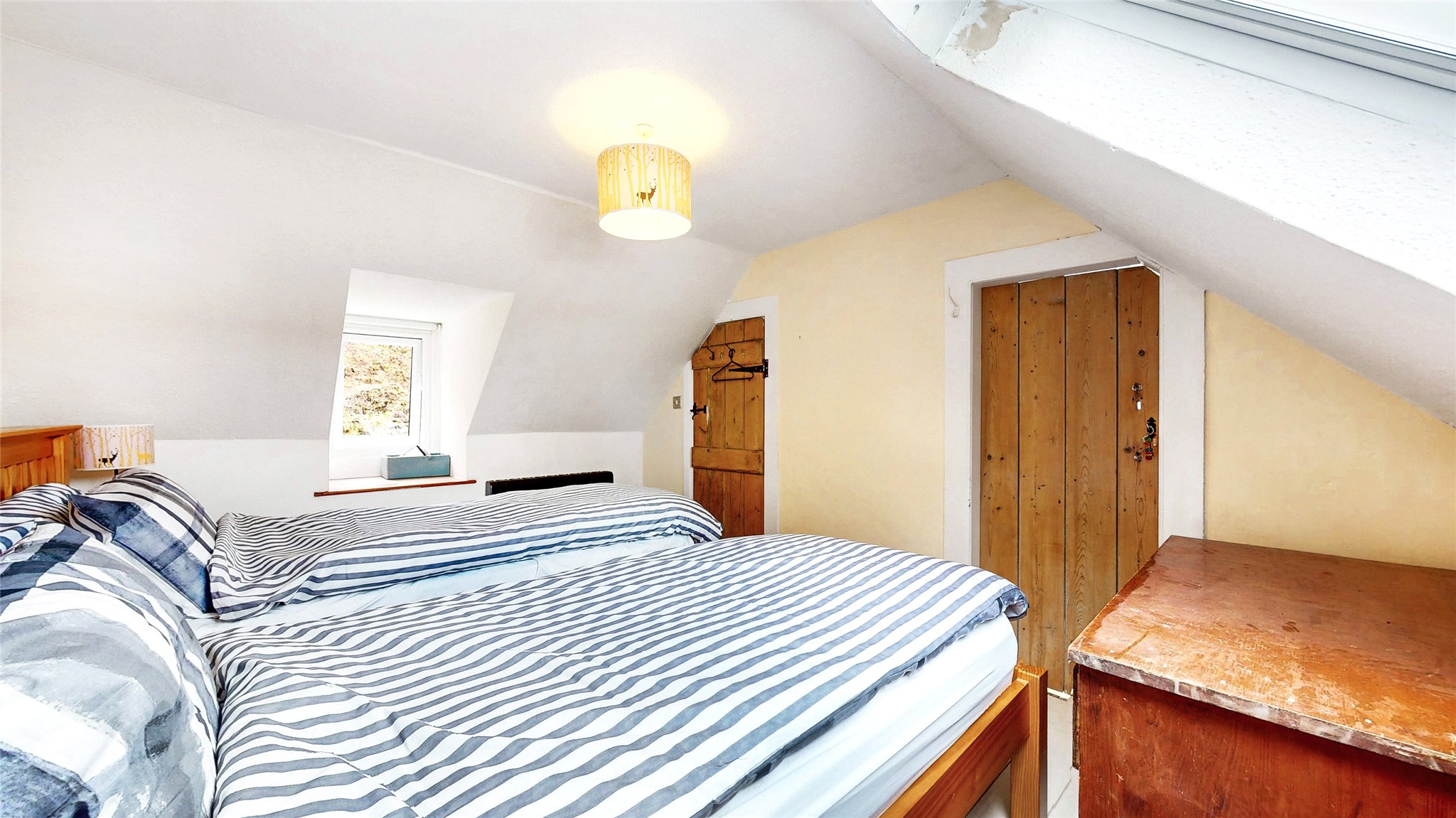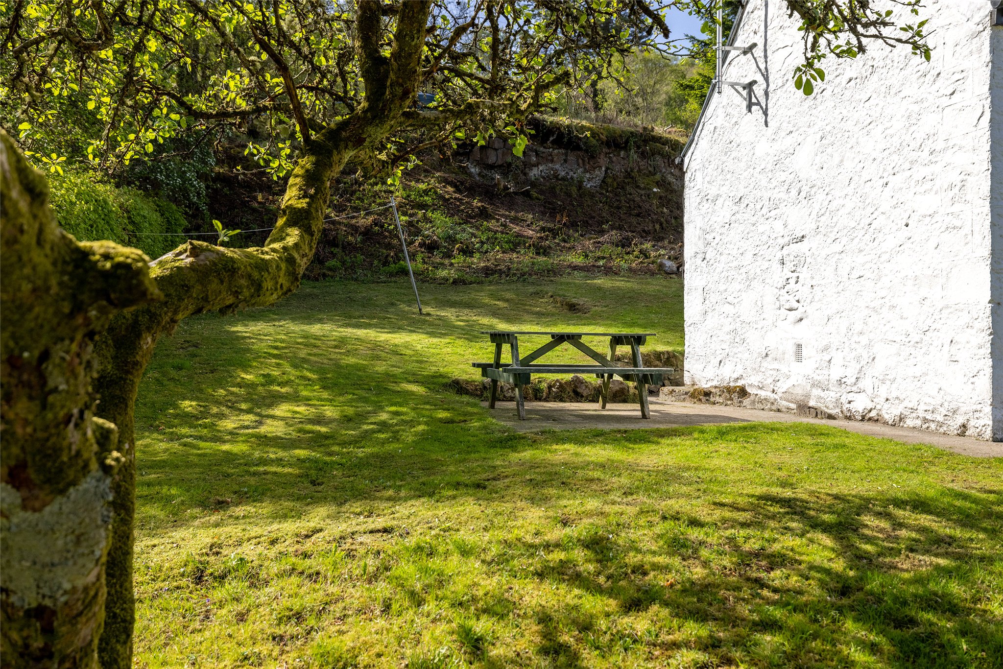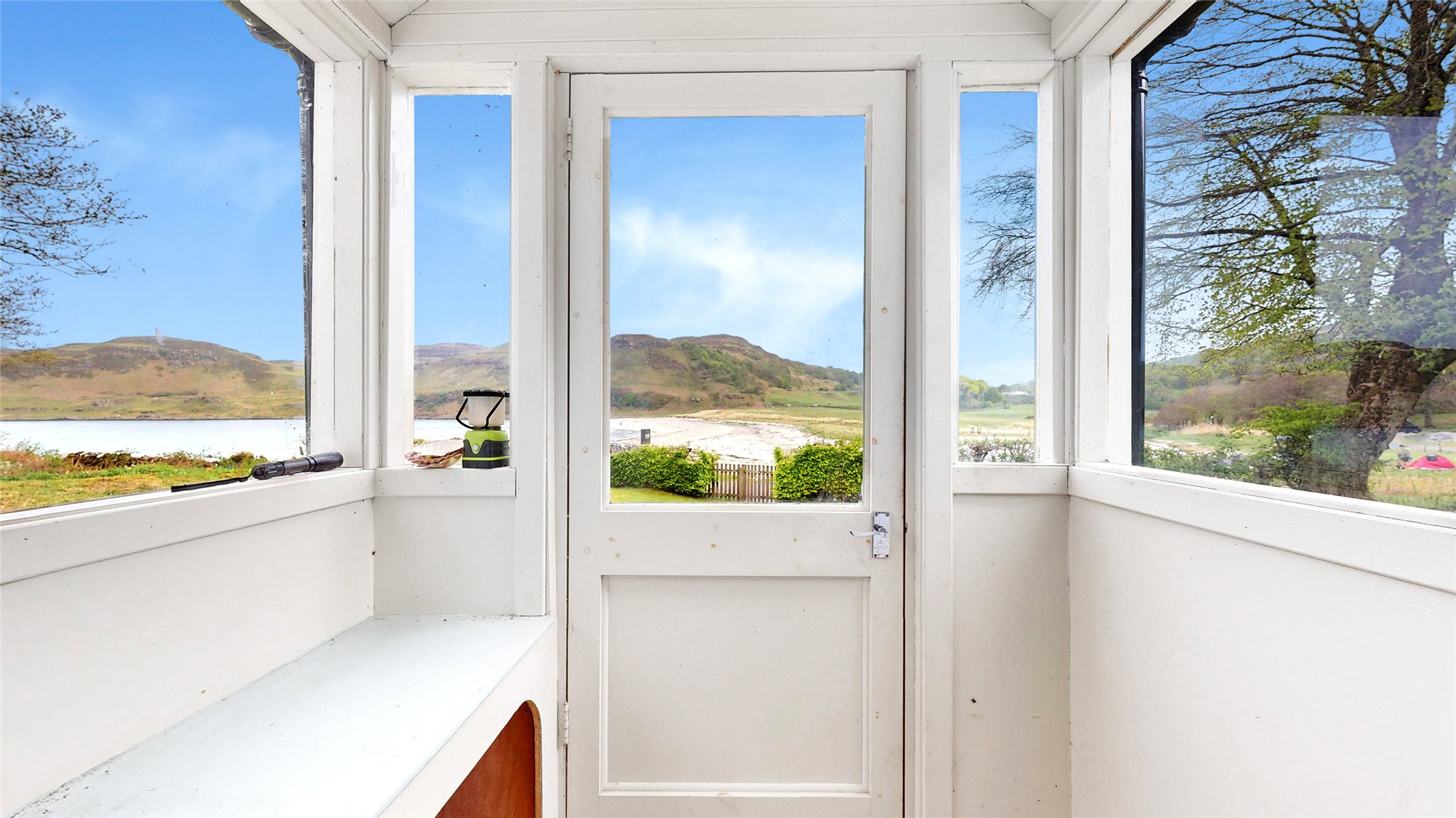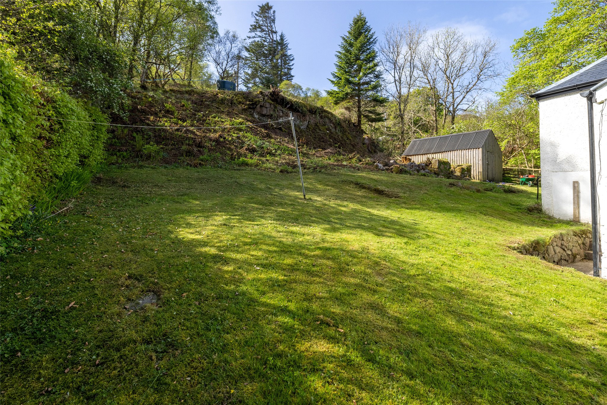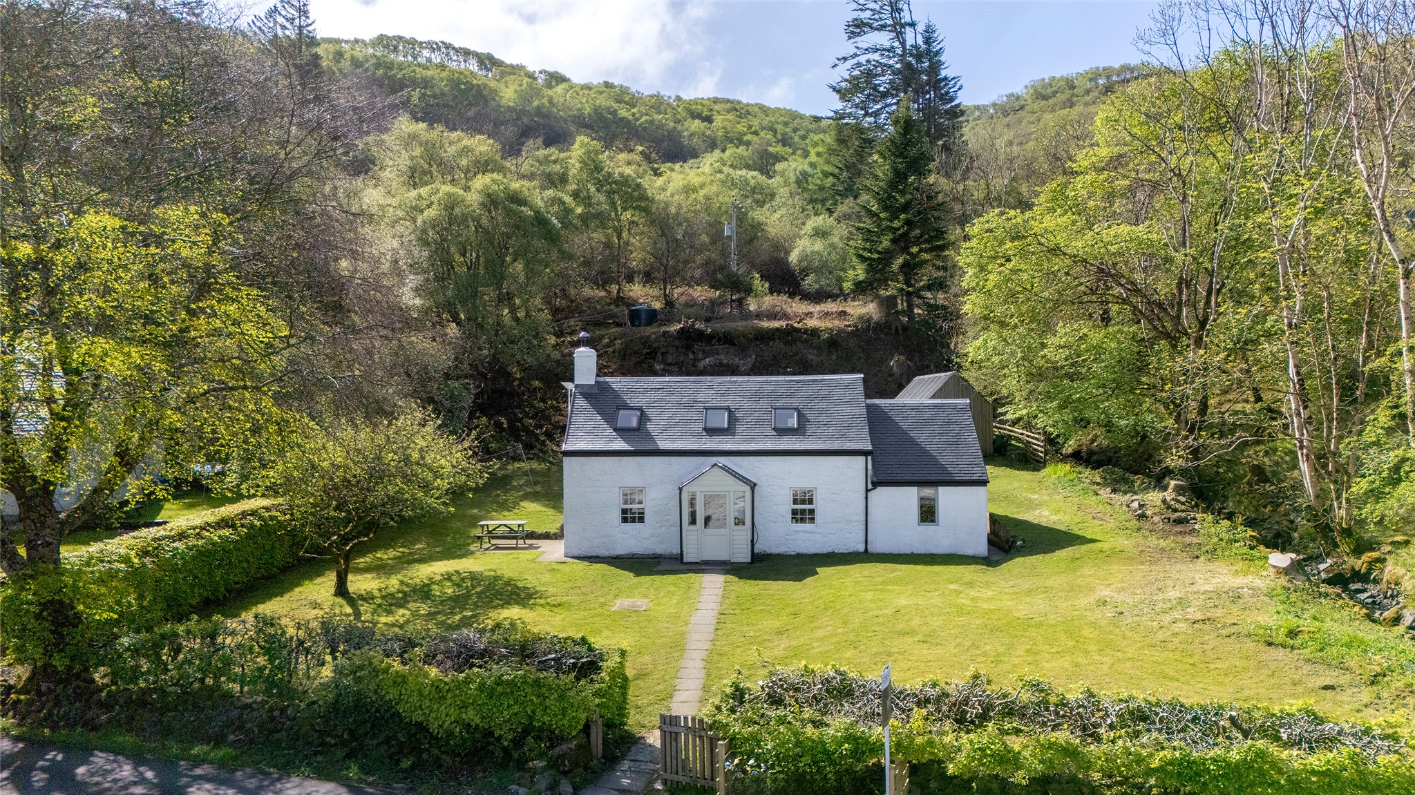 Surrounded by well-maintained gardens, mainly laid to lawn and bordered by neat hedging, the exterior is as charming as the interior. A patio with picnic bench makes the most of the scenic setting. There is also an external laundry/store room, a garden shed, and a wood store—perfect for island living.