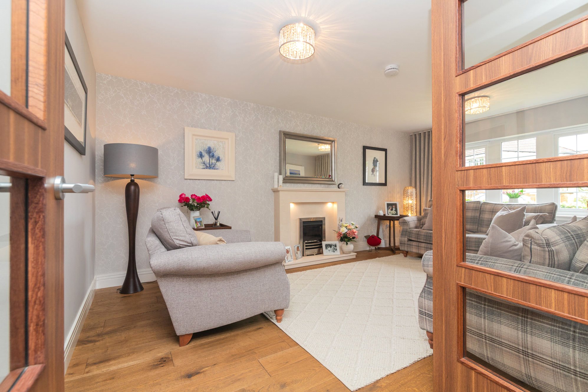 Entry is via the hallway with WC leading to a bright and welcoming inner hallway. The spacious lounge is neutrally decorated and comes with a feature fireplace and inset living flame effect fire. To the rear there is an impressive open plan dining kitchen, very much the heart of the home, which comes with a contemporary fitted kitchen and Siemens integrated appliances. A separate utility room provides additional storage and access to the integral garage. A galleried landing leads to five generously proportioned bedrooms. The principal suite fitted wardrobes, and an en-suite bathroom. Bedroom two also features an en-suite and fitted storage, and there are a further two bedrooms and a large family bathroom.