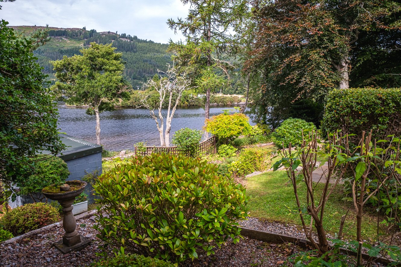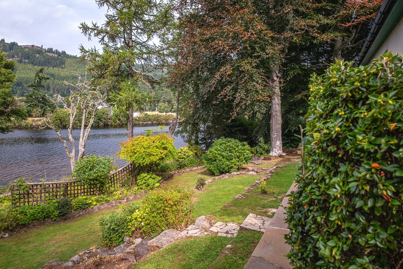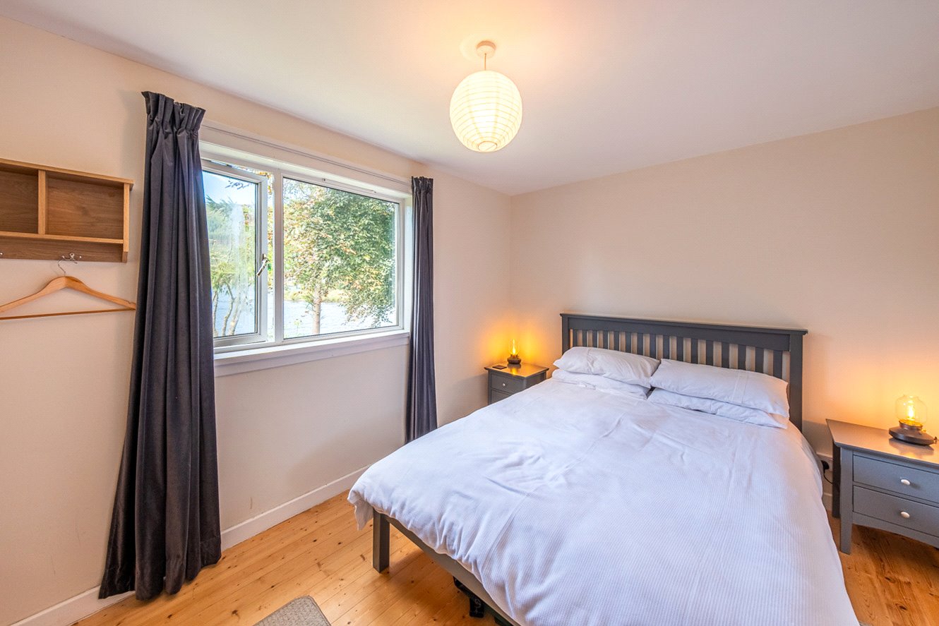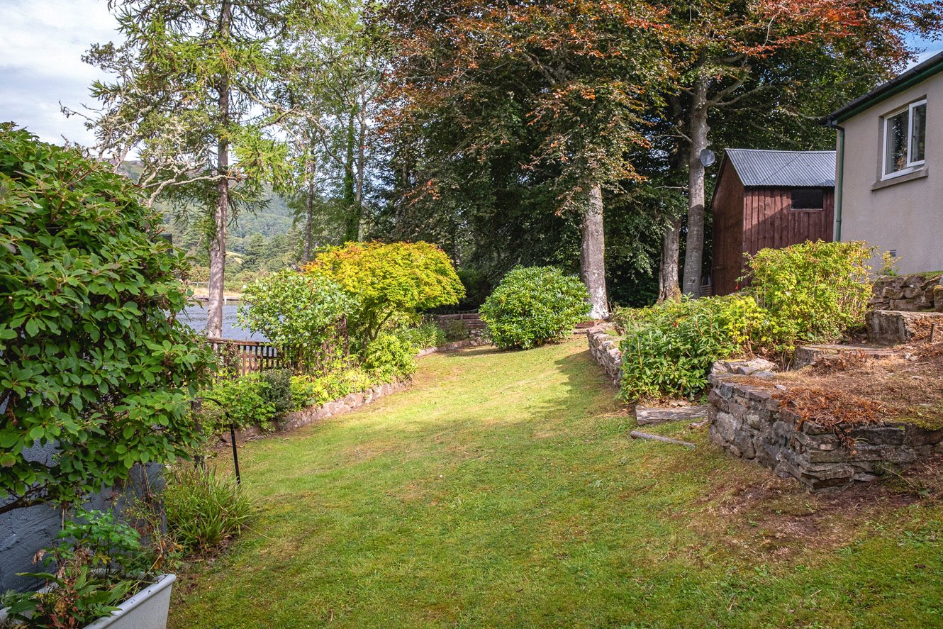 The grounds are bounded by a variety of plants, trees and shrubs with paths leading to the edge of the loch. There is a pumphouse at the bottom of the garden, greenhouse, shed and a large detached timber garage to the side providing excellent storage facilities. There is car parking in front of the garage. Having direct access to the loch, there is an opportunity to create a boat storage area.