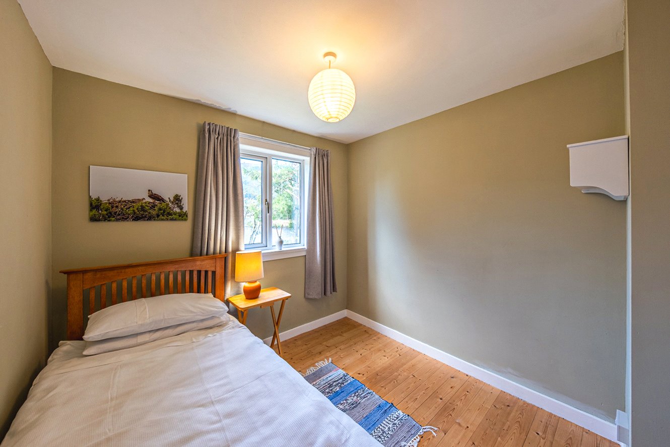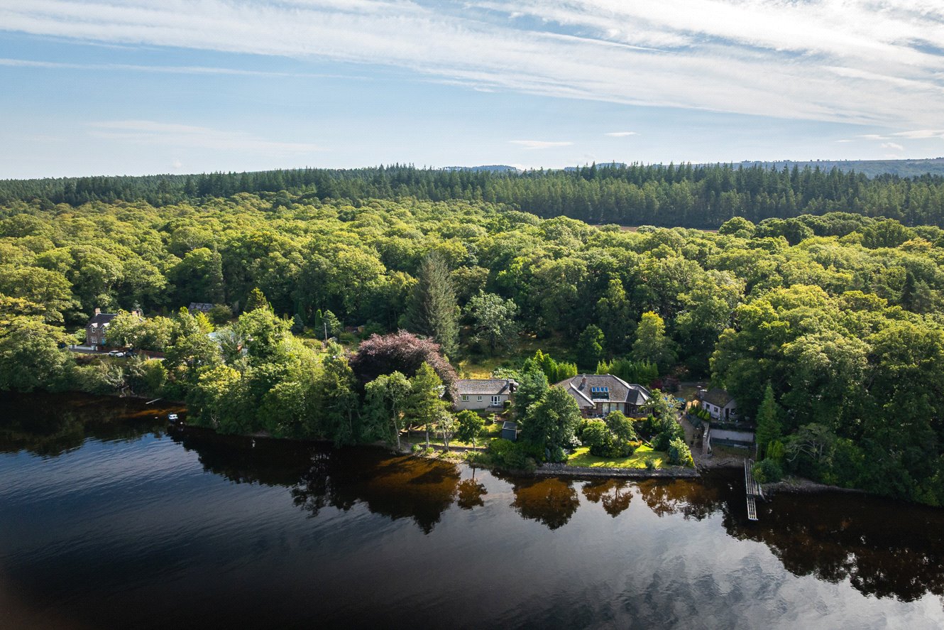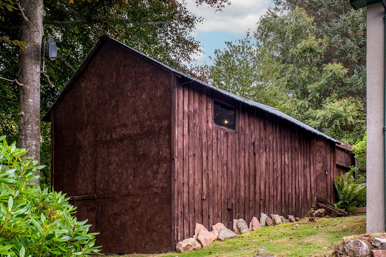 The grounds are bounded by a variety of plants, trees and shrubs with paths leading to the edge of the loch. There is a pumphouse at the bottom of the garden, greenhouse, shed and a large detached timber garage to the side providing excellent storage facilities. There is car parking in front of the garage. Having direct access to the loch, there is an opportunity to create a boat storage area.