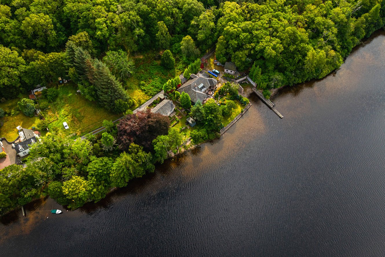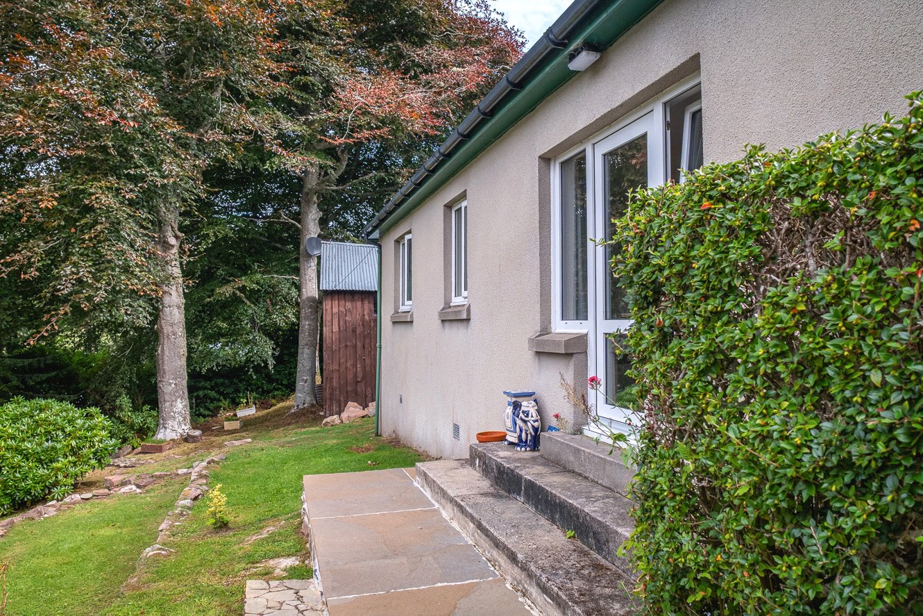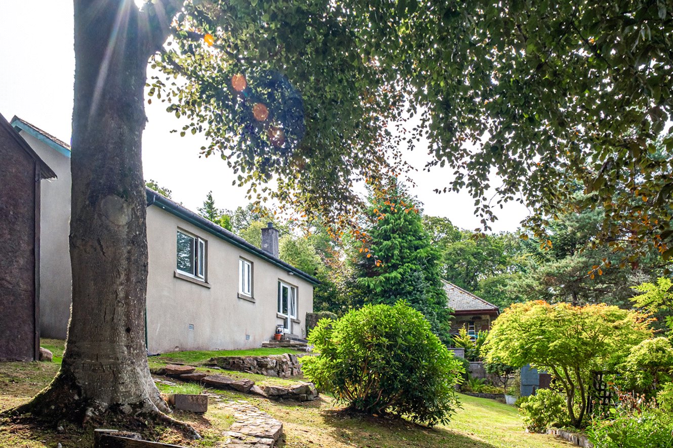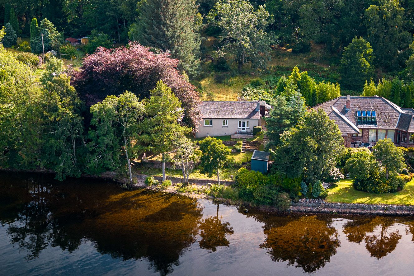 The grounds are bounded by a variety of plants, trees and shrubs with paths leading to the edge of the loch. There is a pumphouse at the bottom of the garden, greenhouse, shed and a large detached timber garage to the side providing excellent storage facilities. There is car parking in front of the garage. Having direct access to the loch, there is an opportunity to create a boat storage area.