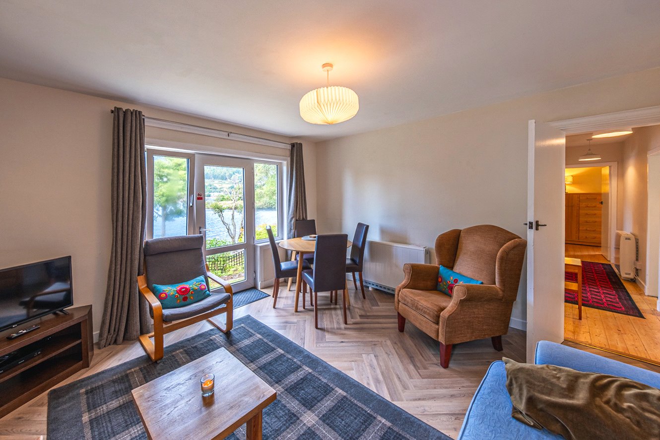 The accommodation is entered via the entrance vestibule leading to the inner hallway. The lounge comes with a solid fuel fire, feature fireplace and a double glazed door providing direct access to the gardens and shoreline extending into the loch where you can enjoy your morning coffee or evening drink whilst admiring the views.