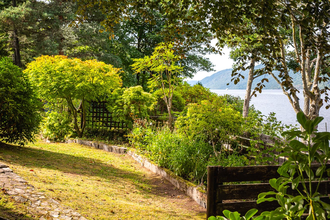Outside, the beautifully landscaped garden offers multiple seating areas where you can relax and soak in the natural beauty. The garden overlooks Loch Ness, providing a serene backdrop and direct access to the beach.