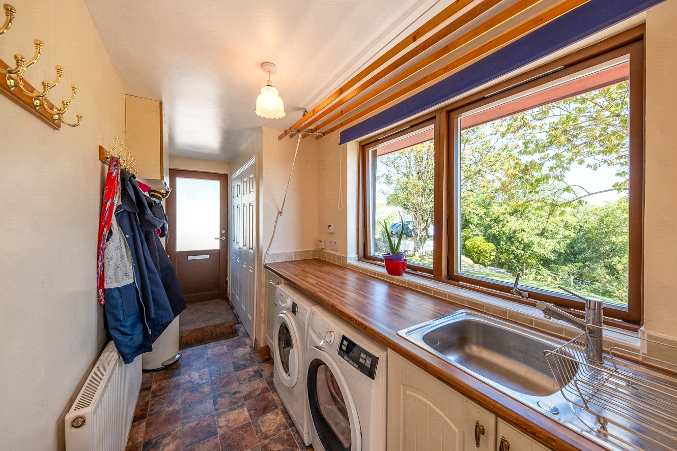 Adjacent to the kitchen, is a utility room with further storage, a washing machine, tumble dryer, a sink and a pulley. A double doored cupboard houses large water tank, and a new oil heating boiler. Off the utility room is a WC.
