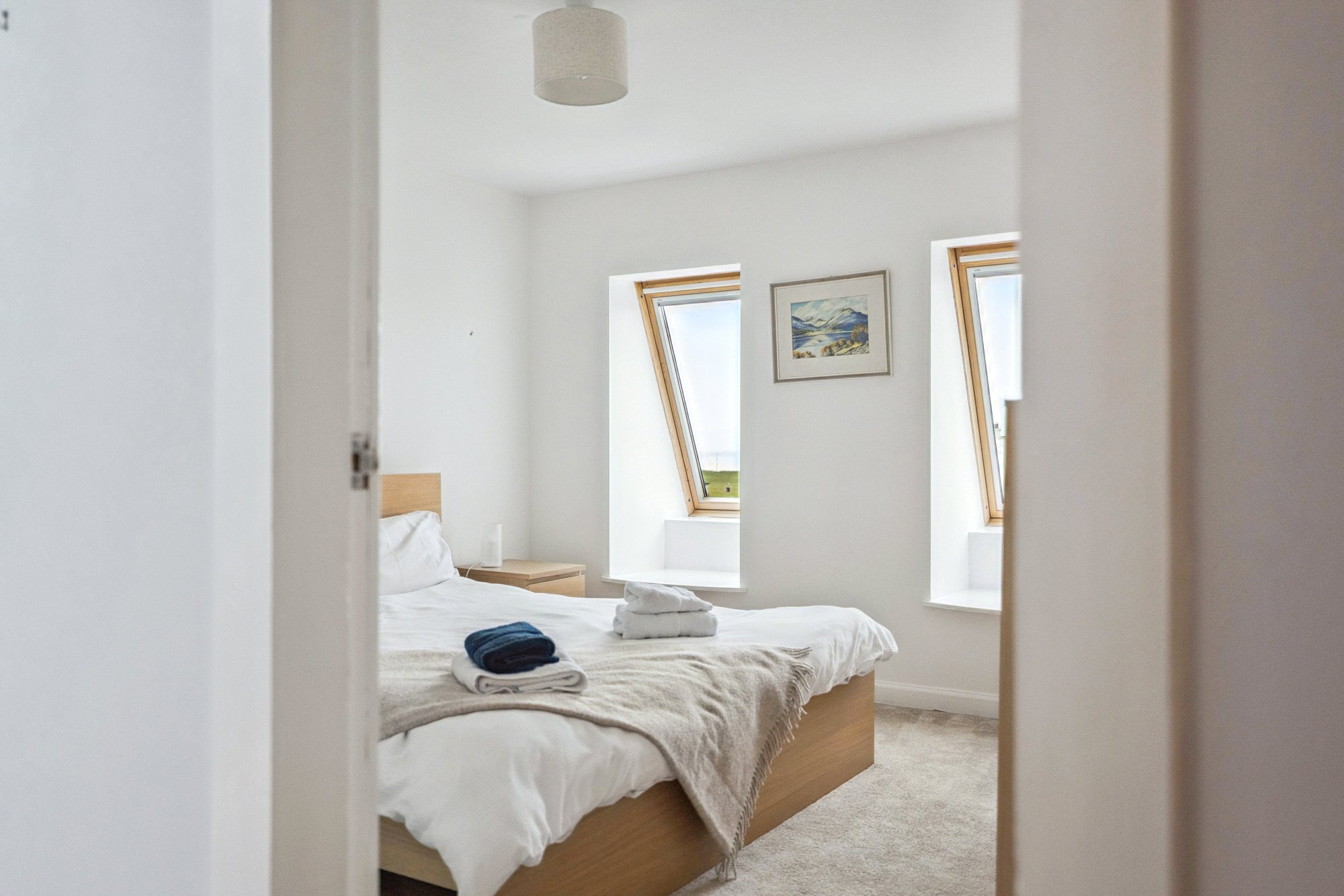 There is an impressive front facing formal lounge room, a well-equipped modern fitted kitchen with a host of integrated appliances, dining room, shower room, and large en-suite double bedroom. Both the dining room and bedroom are rear facing and enjoy great views of the coast and beyond.