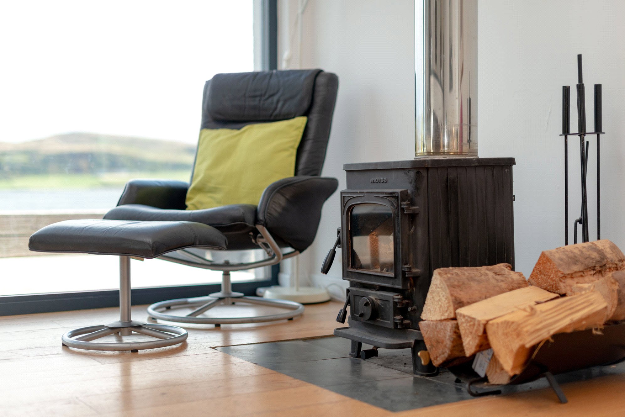 The accommodation begins with a light and airy hallway which leads into the main living space: a fabulous sitting room/dining kitchen which is double height at one end and features a modern log burner with stainless steel flue. An expansive full height picture window and glazed door frame the stunning outlooks and open onto the extensive decked terrace which wraps around two sides of the house. The sleek and stylish kitchen area has its own door out to the terrace and benefits from a gas hob, electric oven, concealed integrated fridge/freezer and washing machine. Double bedroom 1 is on the ground floor and enjoys beautiful views, has built-in storage and a study or dressing room off. Completing this level is an attractive bathroom.