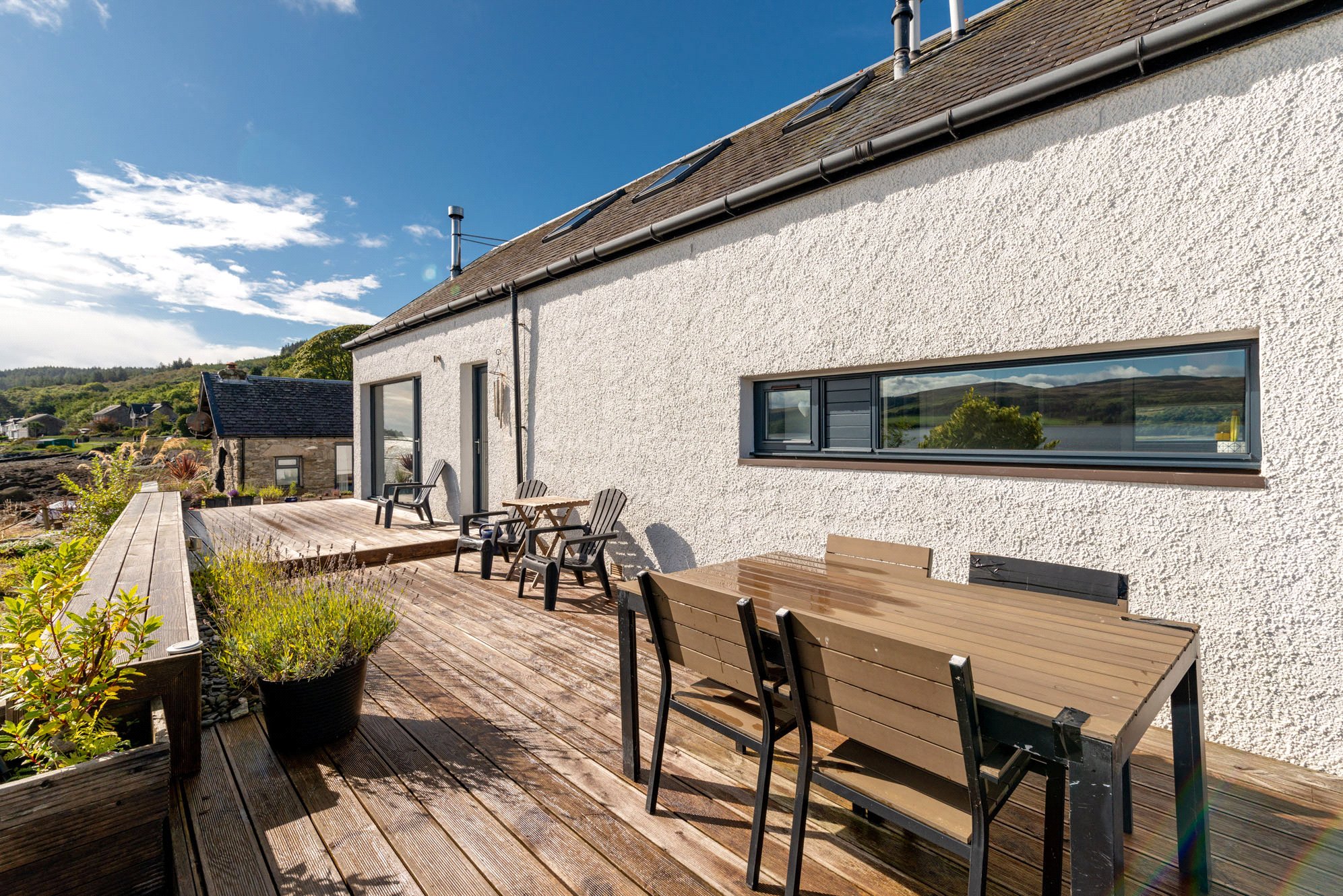The Pier House, Kames is a delightful contemporary detached waterside home occupying a spectacular location with its own pier, beachfront and separate detached cottage.