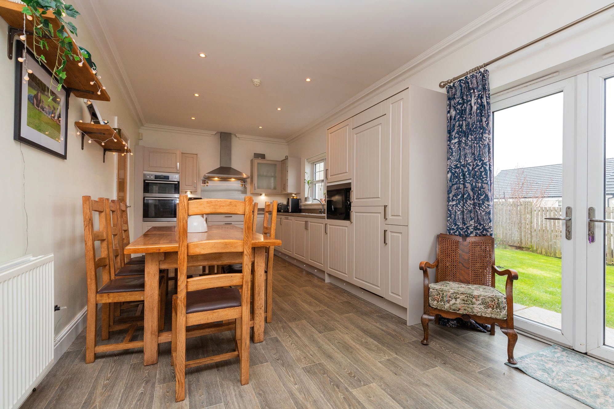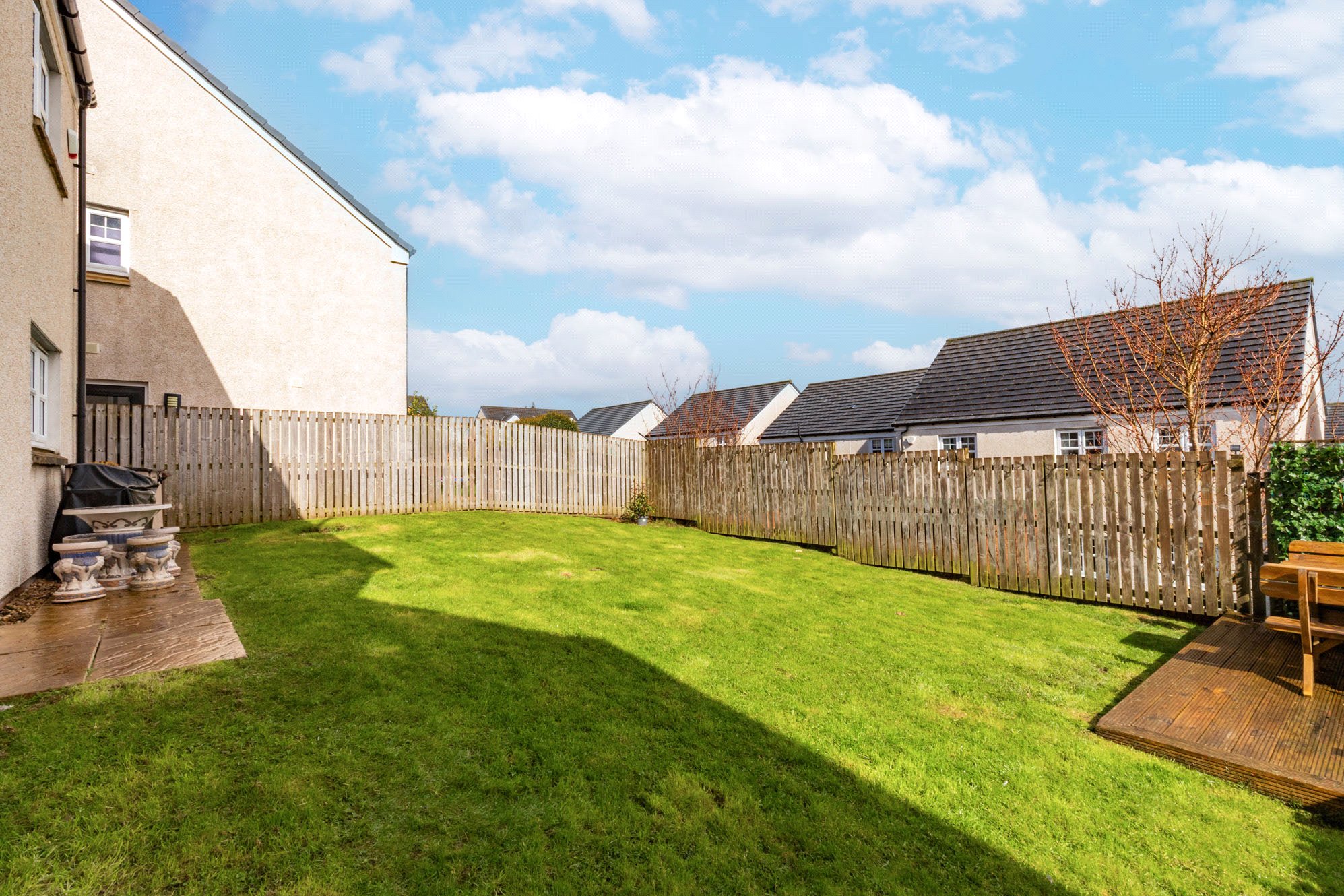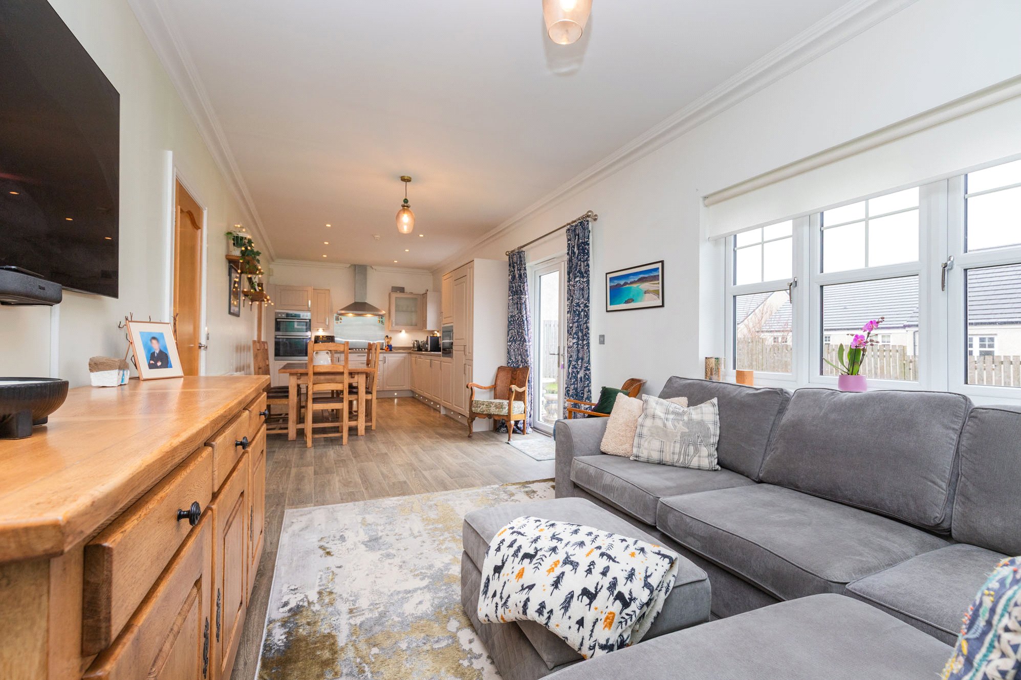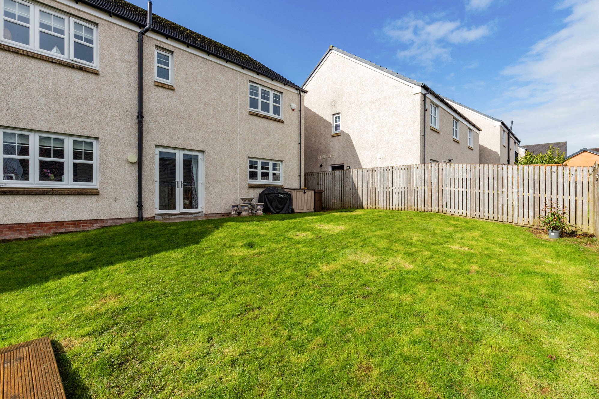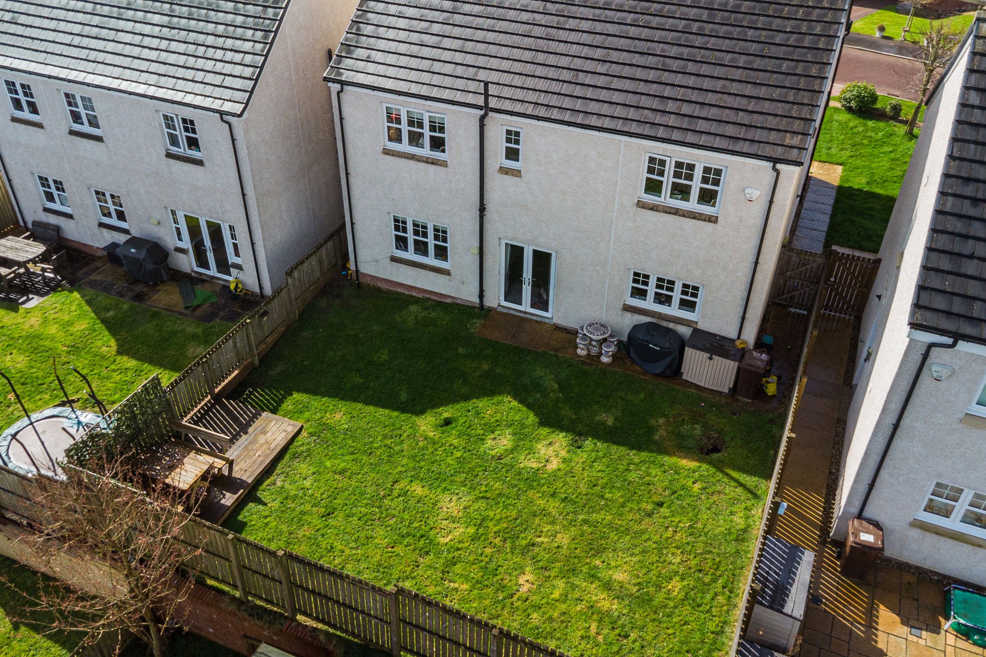 Externally, the property features a monobloc driveway to the front providing ample off-street parking, together with an electric vehicle charging point. This leads to a double garage with power and lighting. To the rear, the enclosed garden is laid mainly to lawn and features a raised decked terrace, ideal for outdoor dining and entertaining.