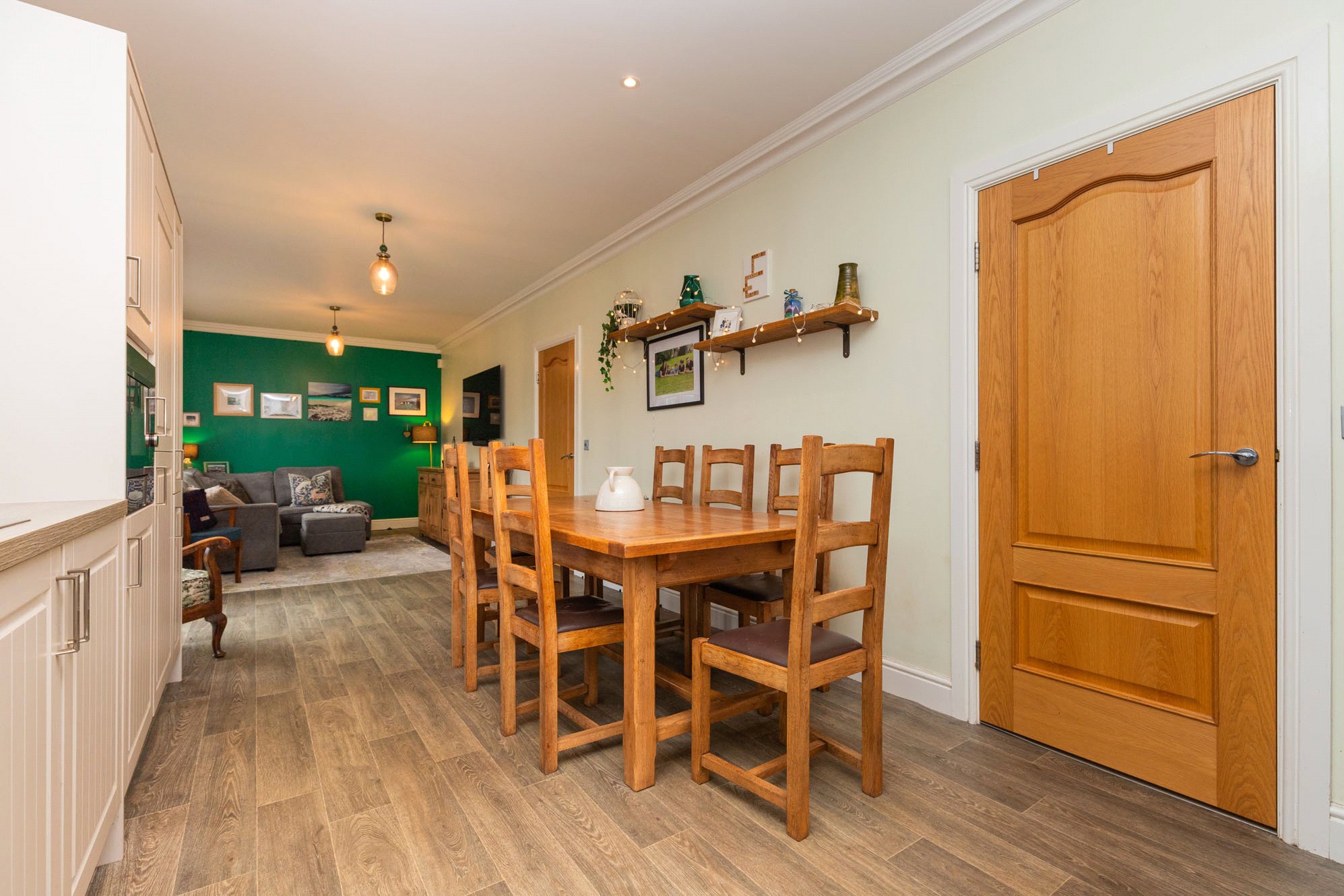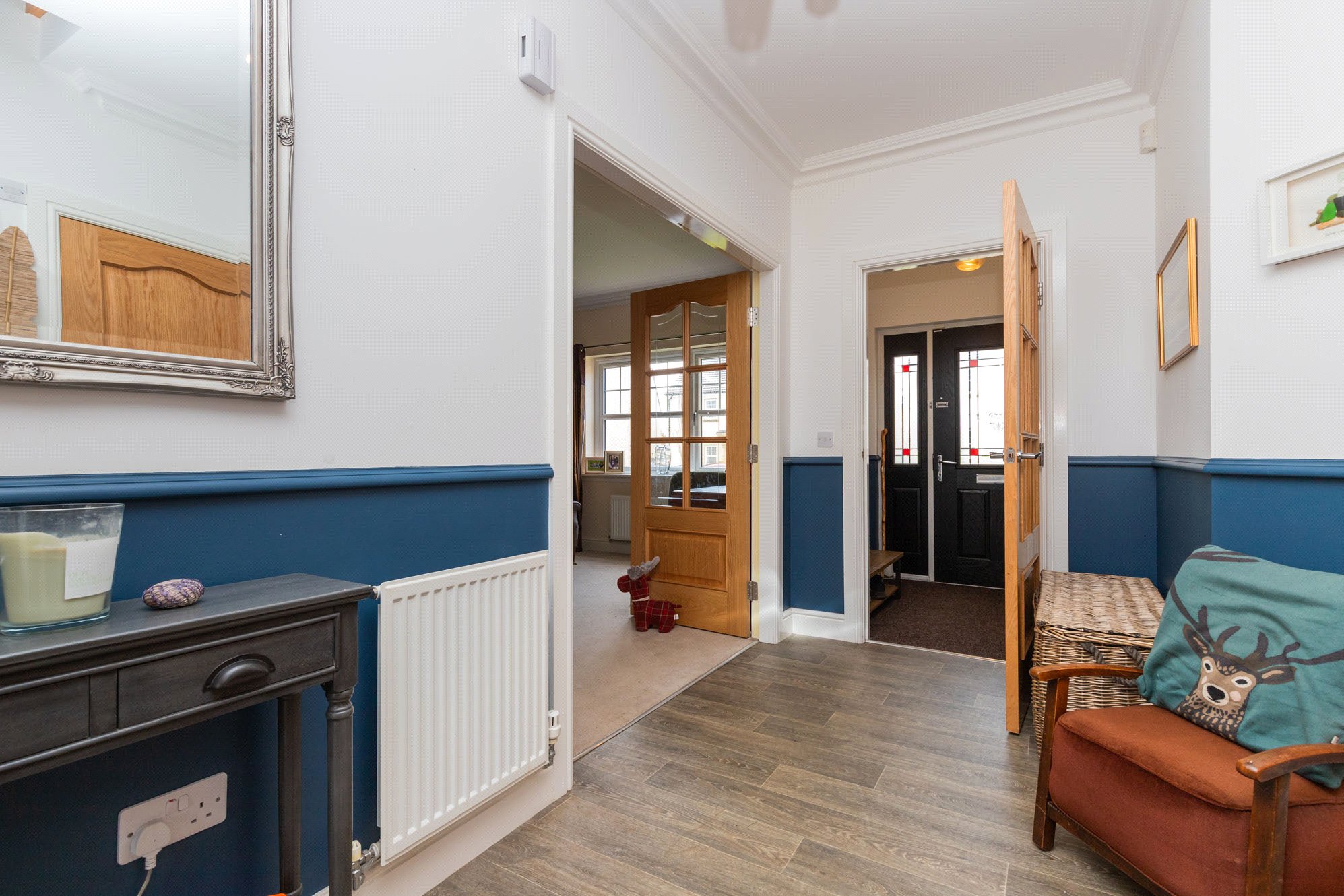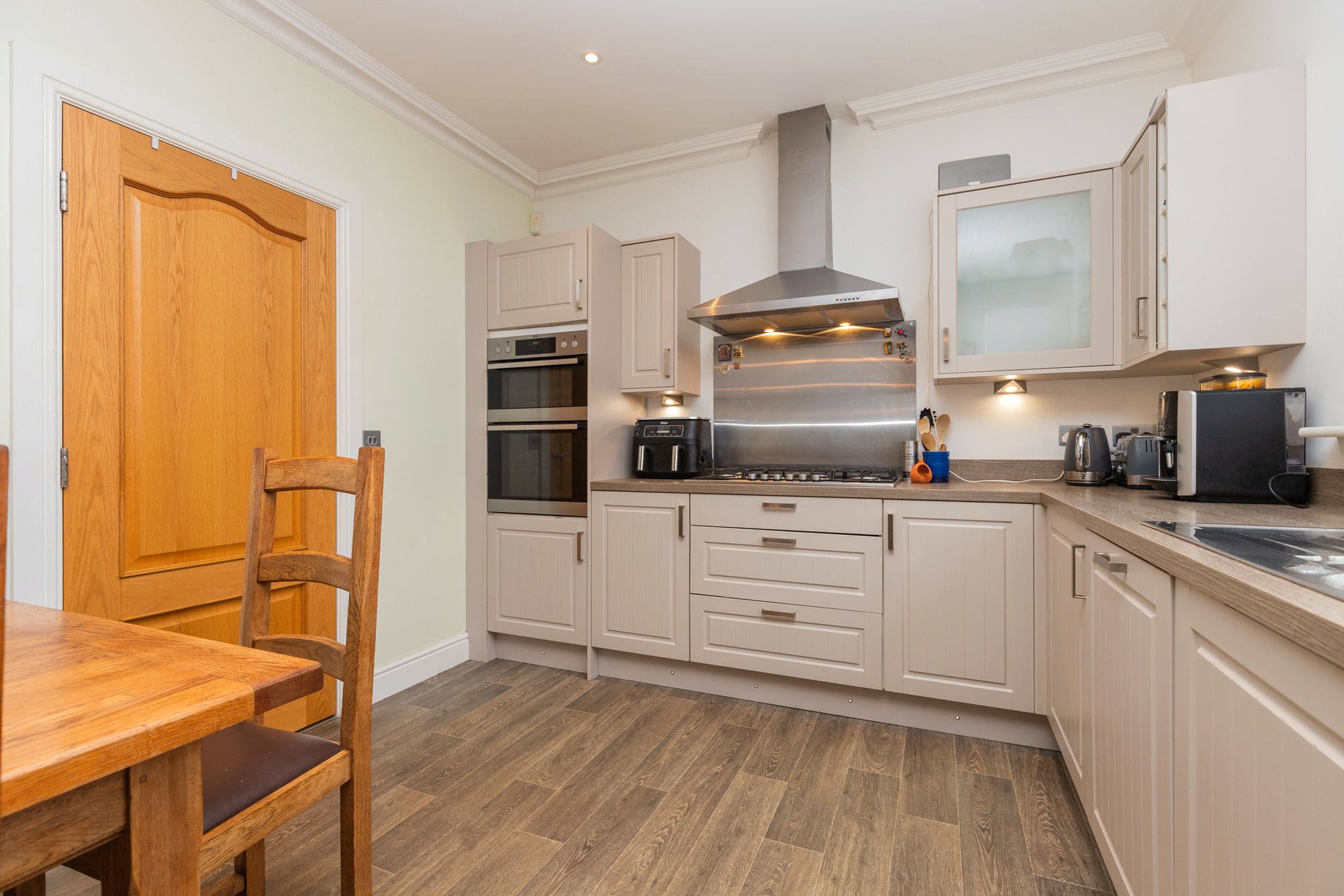 Presented to the market in excellent condition throughout, the property offers bright, well-proportioned rooms finished to a high specification, including oak veneer internal doors and decorative ceiling coving.