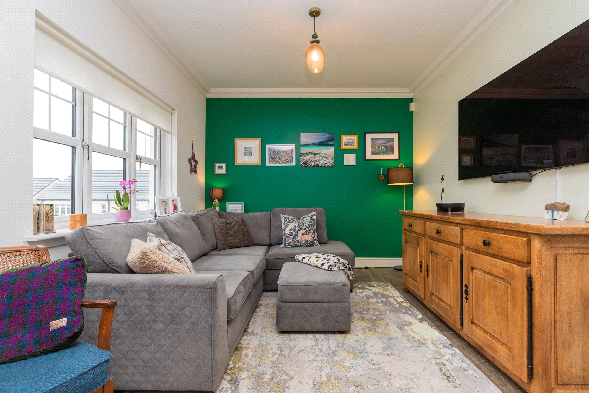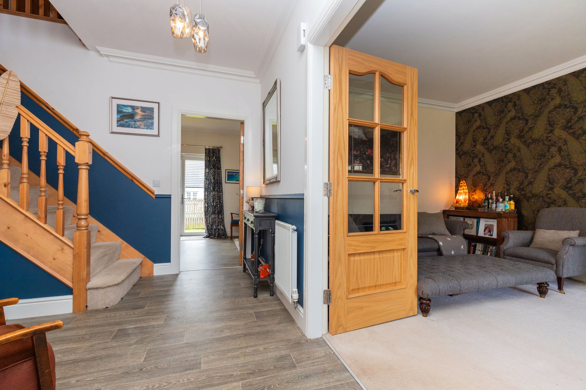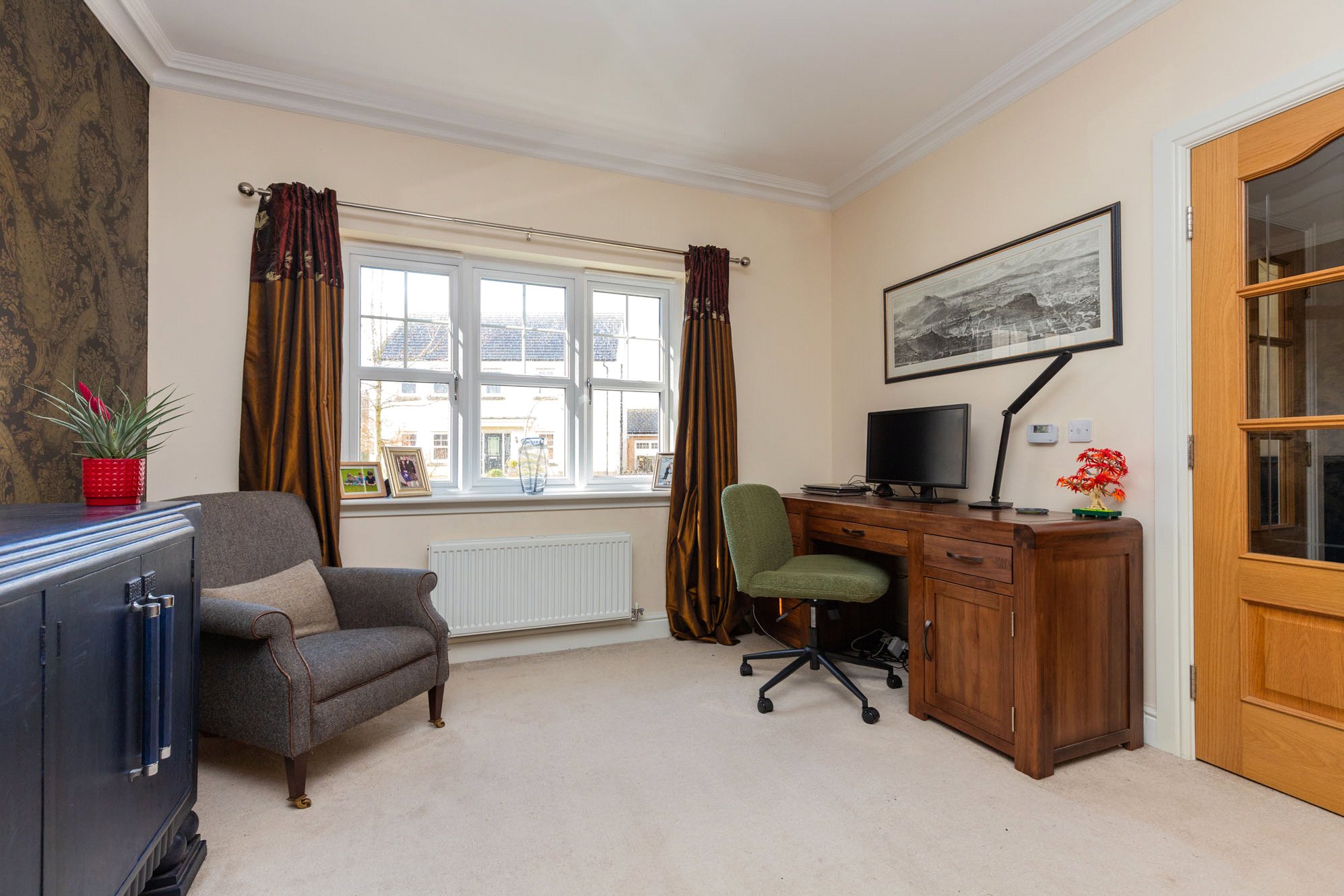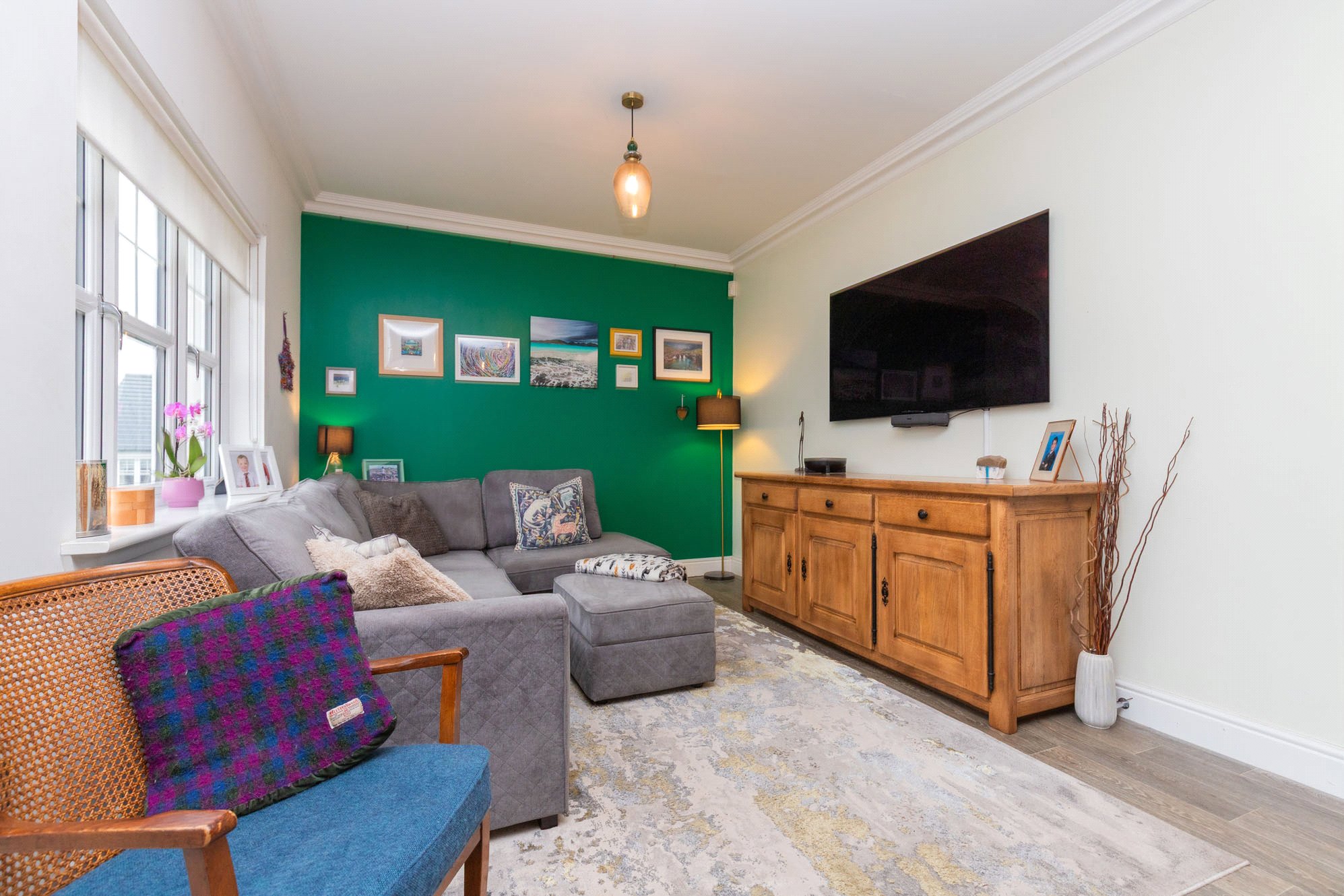 Presented to the market in excellent condition throughout, the property offers bright, well-proportioned rooms finished to a high specification, including oak veneer internal doors and decorative ceiling coving.