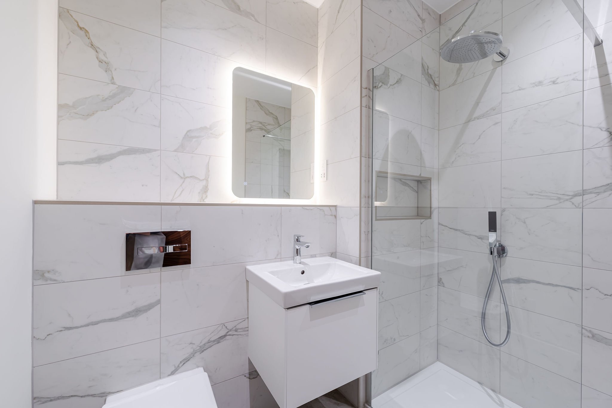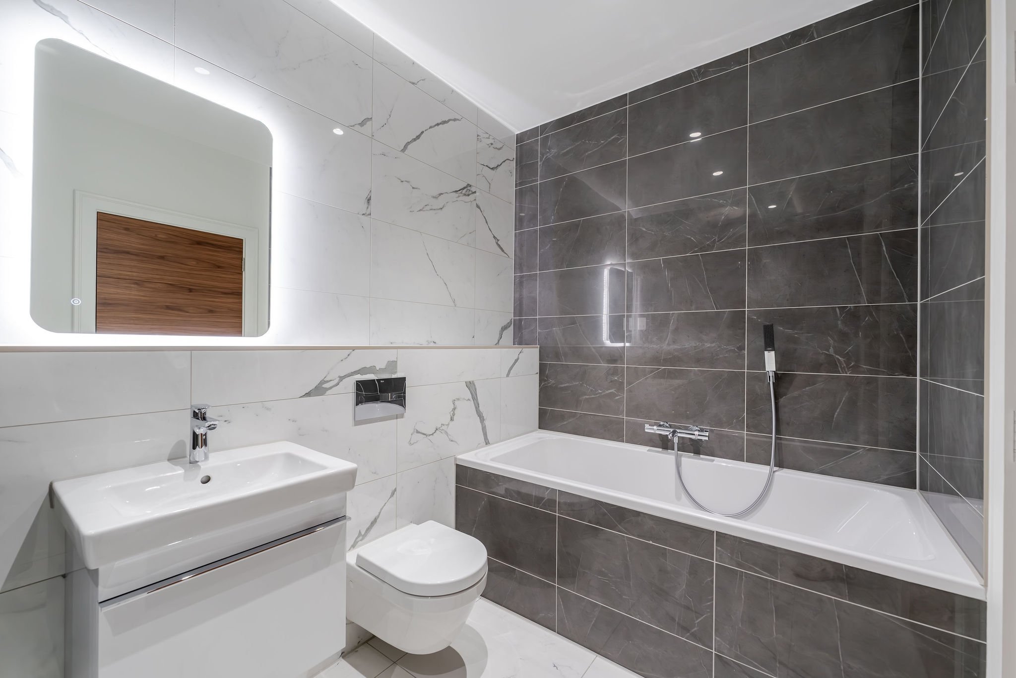 Luxurious bathrooms with Atlas Concorde porcelain tiling, premium Villeroy & Boch sanitaryware, and Hansgrohe brassware.