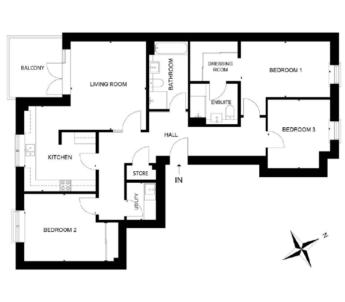 The living space which connects to both the kitchen and the balcony, provides a wonderful area for entertaining guests. This layout offers ample storage throughout, as well as a convenient utility room.