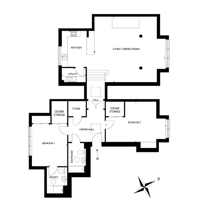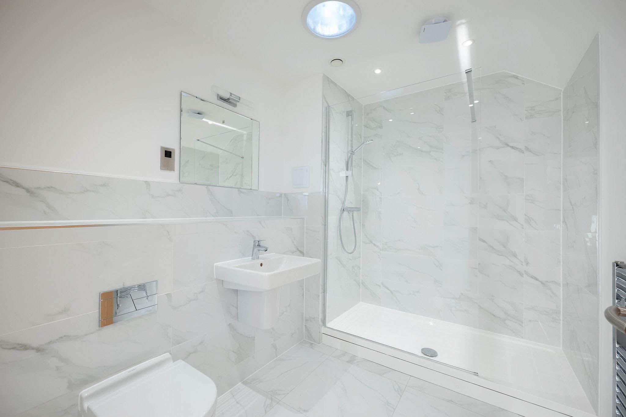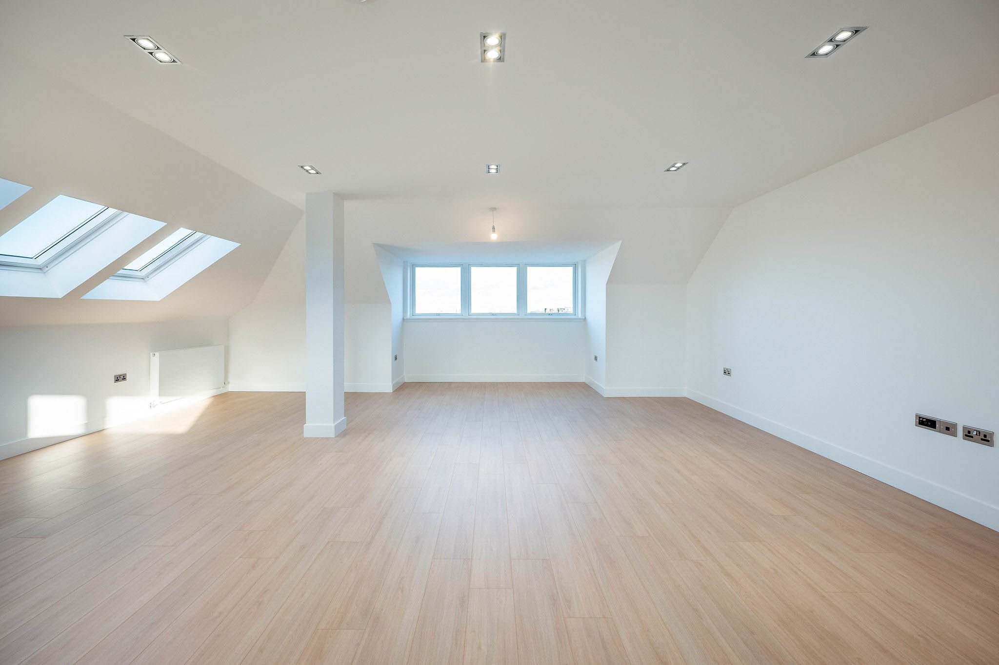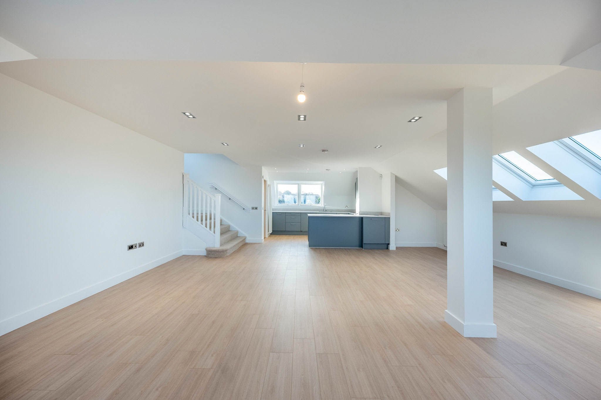 Offers luxury, bright living at it’s finest, this penthouse comprises two large bedrooms and an openplan kitchen, living and dining space. The home is bathed in light from roof lights throughout.