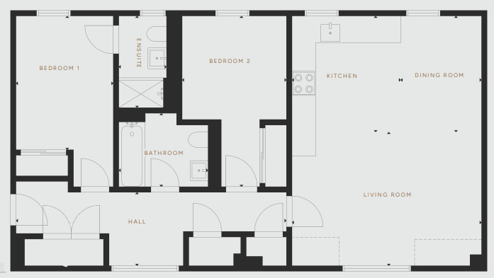 Boasting an open plan kitchen, living and dining area, 2 bathrooms, one being an en-suite, and two generous sized bedrooms, this property has been crafted to meet the highest standards and offers a sanctuary of sophistication.