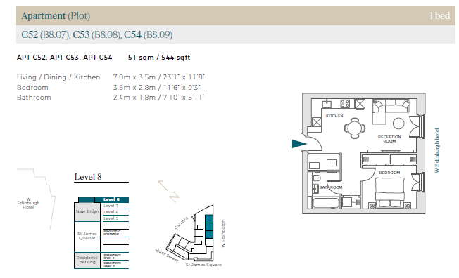 Apt 52, Pavilion C, New Eidyn, St James Quarter, Edinburgh, EH1 3SS