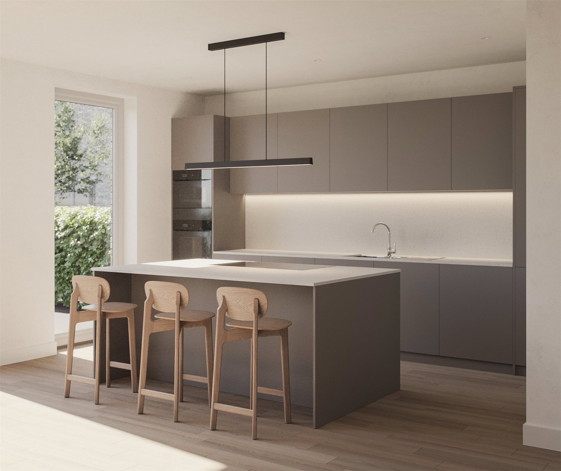 This two bedroom duplex Fishers Flat is finished to a high interior specification with a German manufactured kitchen and sleek bathrooms. The open plan living/kitchen/dining area makes a welcoming entertainment space and the flat offers ample built-in storage. Designed and built to the highest standard, the flat features a sustainable highly efficient heating system (ASHP).