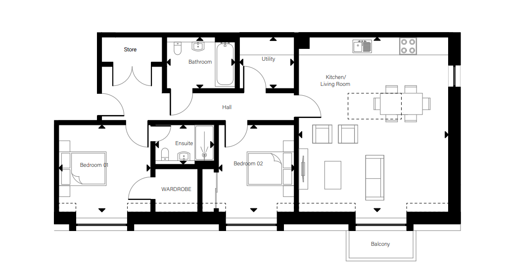 Plot A07 is a 2 bedroom property spanning over 1,000sqft and located in Block A of the apartments at St Andrews West.