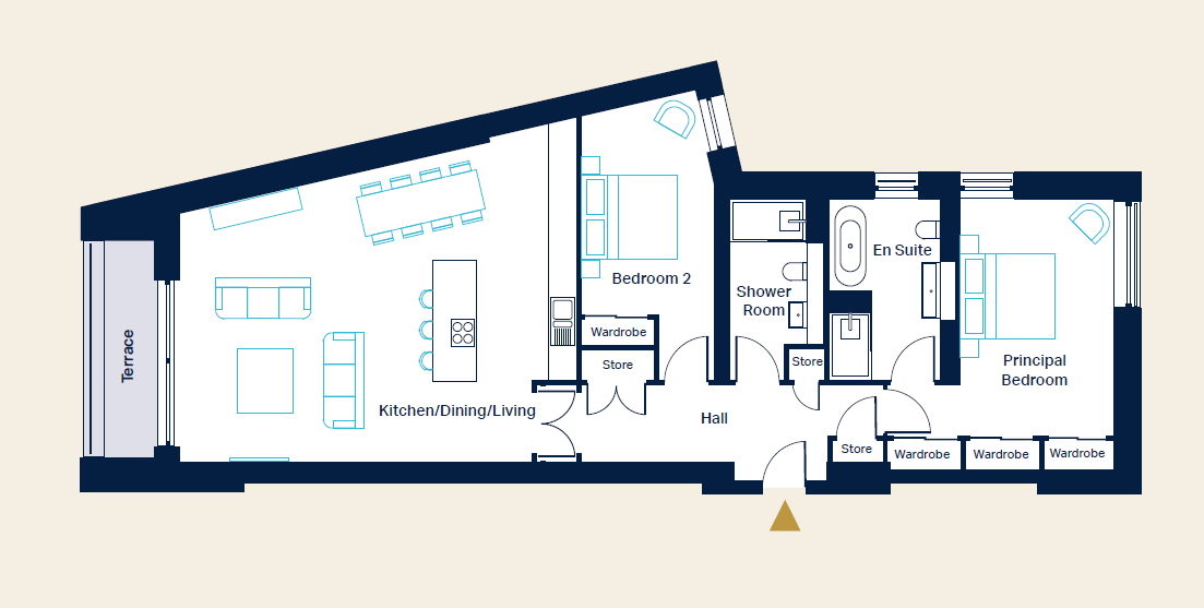 Plot B1.12 is a stunning two-bedroom lower ground floor apartment with a private outdoor terrace, located on Belford Road in Village View, the latest jewel in the AMA Homes crown.