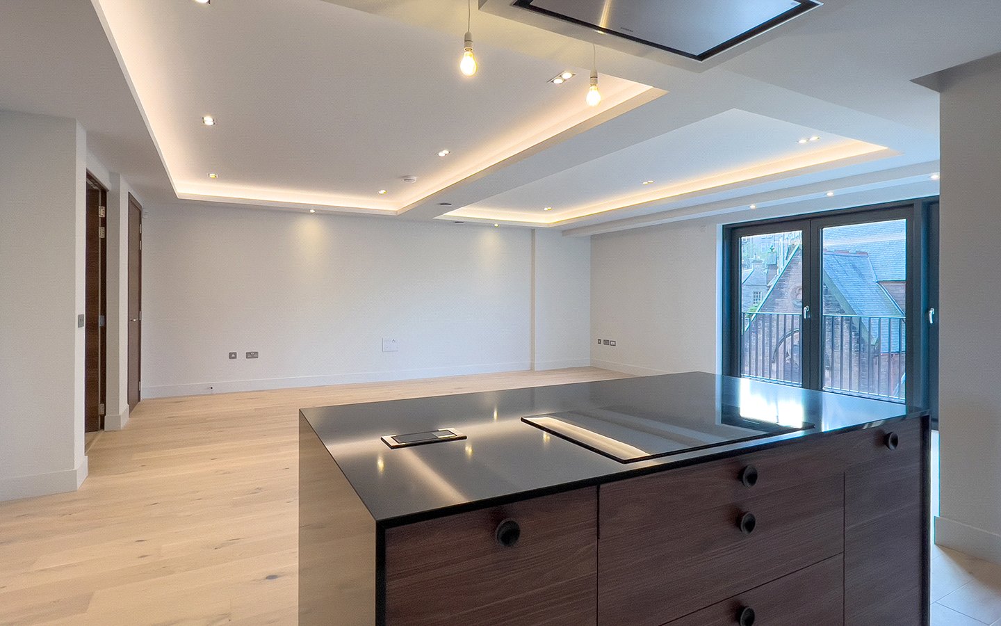 Village View, developed by AMA Homes, comprises 45 luxury apartments and 3 family townhouses across three interconnected buildings: a restored landmark building called Douglas House, and two contemporary new-build structures, including the Mid Block in which this plot sits.