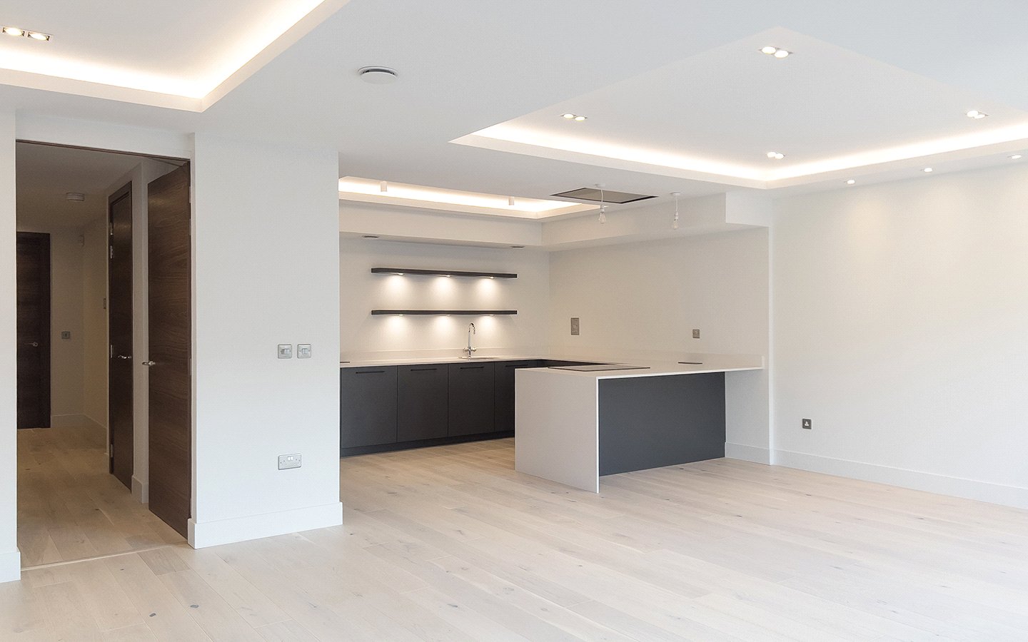 Expansive open-plan living, kitchen and dining area measuring 24’3 x 22’7, designed for modern living and flexible furnishing.