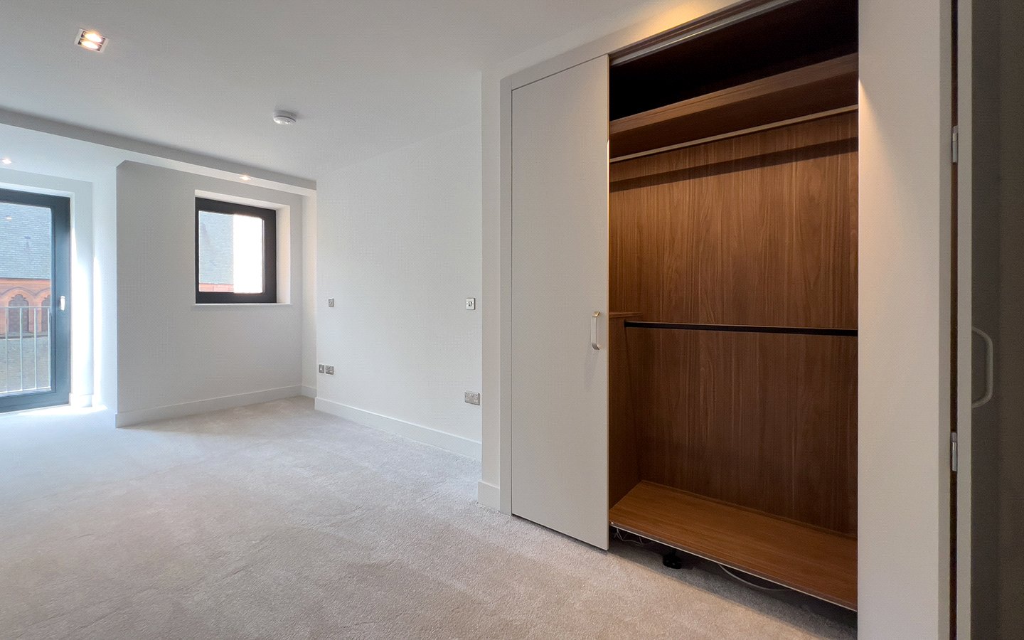Large second double bedroom with extensive built-in wardrobe space.