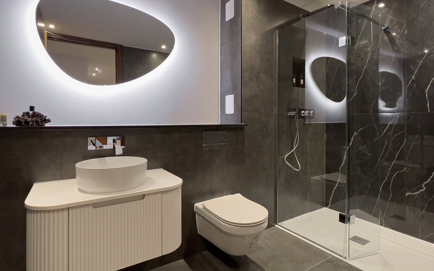 Boutique Bathrooms: Both the En Suite and the separate Shower Room boast boutique-hotel-style luxury, featuring large format ceramic tiles and designer chrome fixtures.