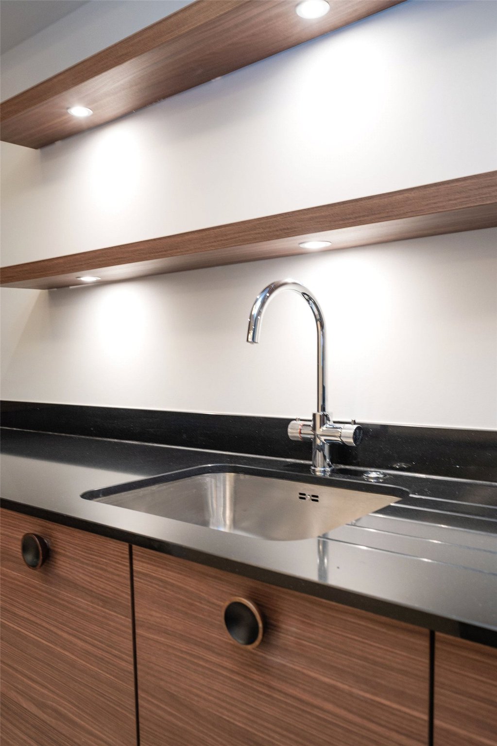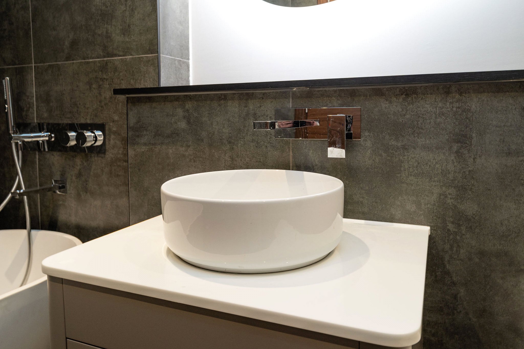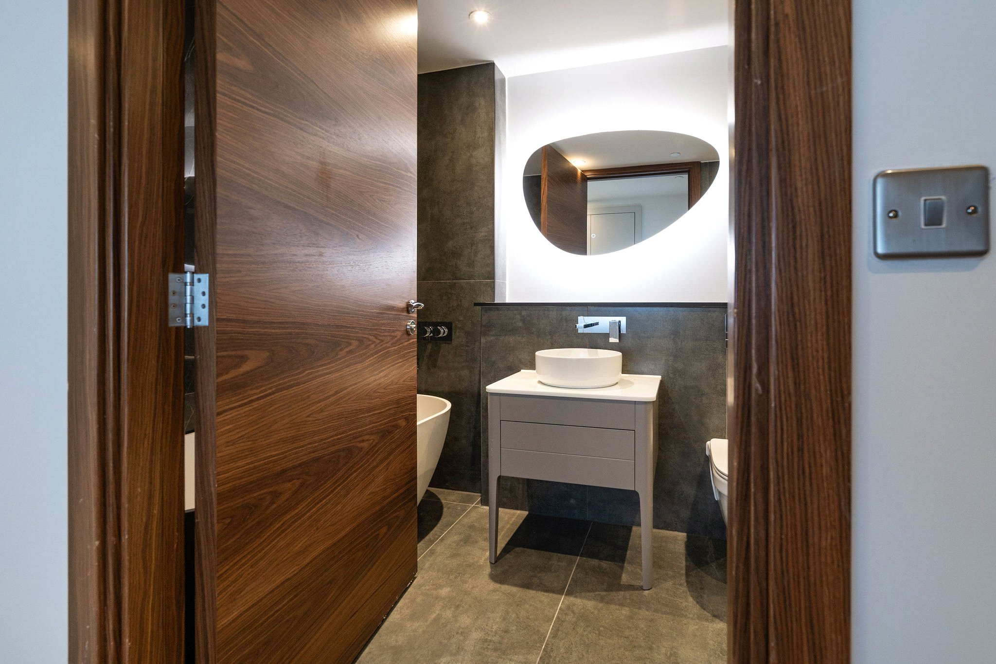 Two Luxury Bathrooms: Enjoy boutique-hotel-style luxury with a main Bathroom and an En Suite, both boasting large format ceramic tiles and designer chrome fixtures.