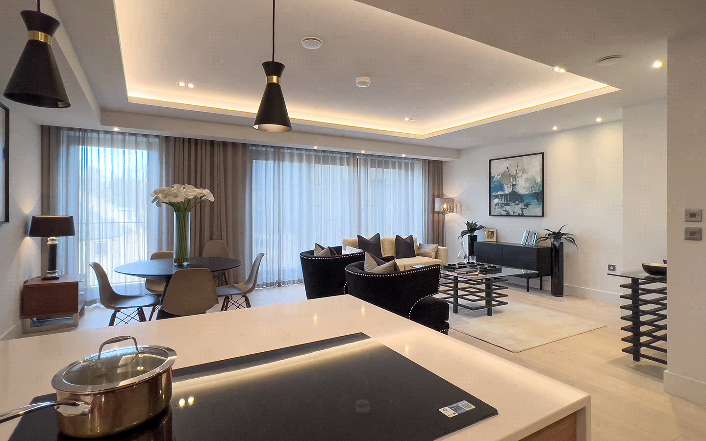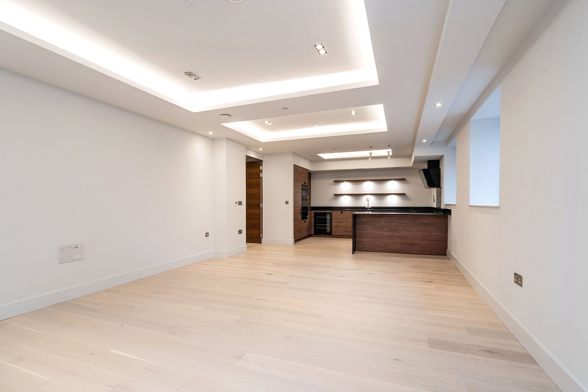 Open-Plan Living: The heart of the home is an impressive, expansive Kitchen/Dining/Living area, designed for both relaxing and entertaining. The spacious public room features wide-plank, engineered timber flooring and coffered ceilings with feature mood lighting to subtly define the different zones.