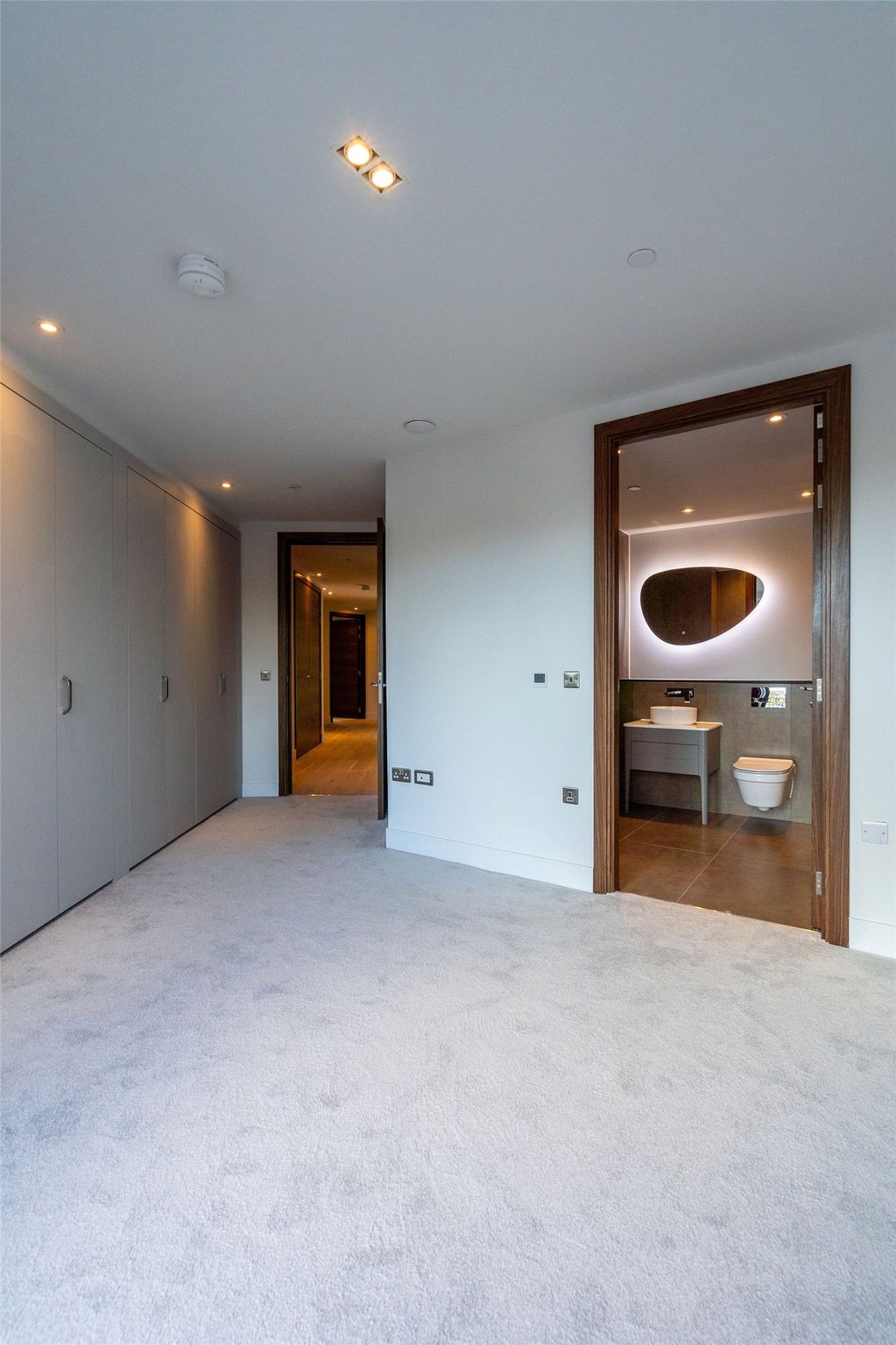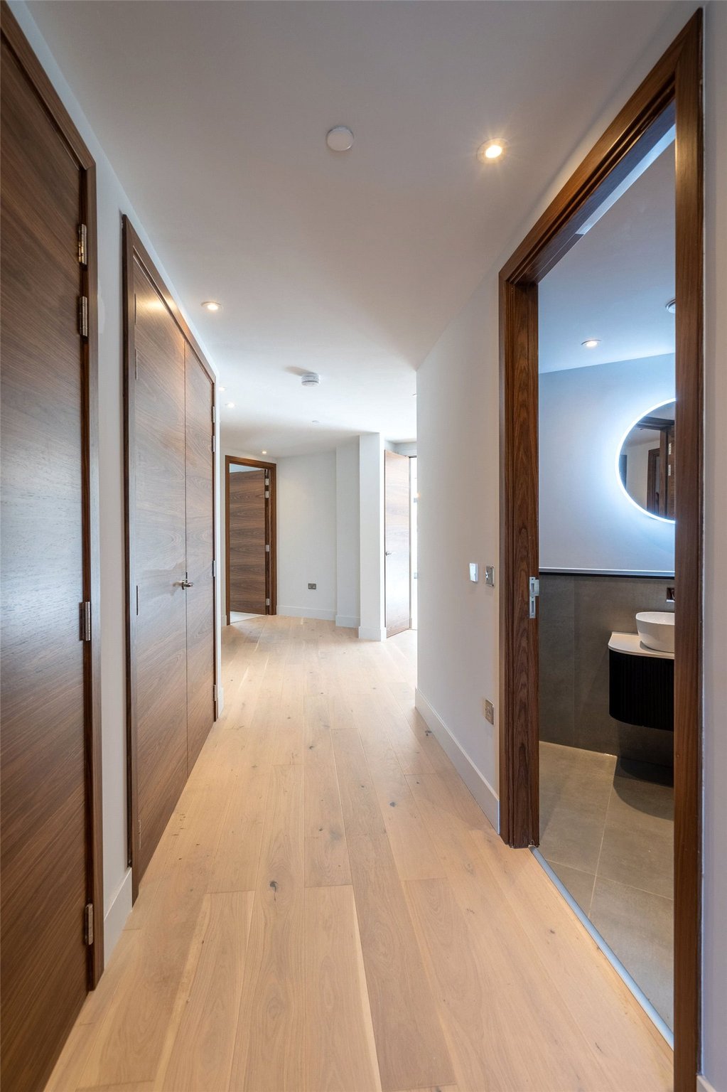 The principal bedroom is tucked away for privacy and features fitted wardrobes along with a sleek en-suite. The second bedroom, also generously sized, benefits from easy access to a stylish separate shower room; perfect for guests or sharers.