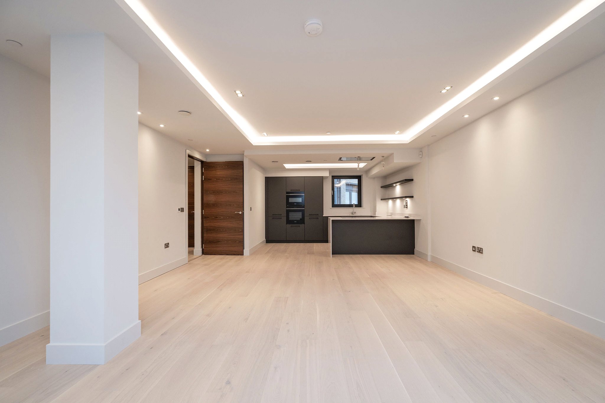 This impressive apartment opens into a welcoming hallway, leading through to a generous open-plan living area, perfect for both relaxing and entertaining. The contemporary kitchen is well-positioned, offering ample workspace and a sociable layout that flows seamlessly into the dining and lounge areas.
