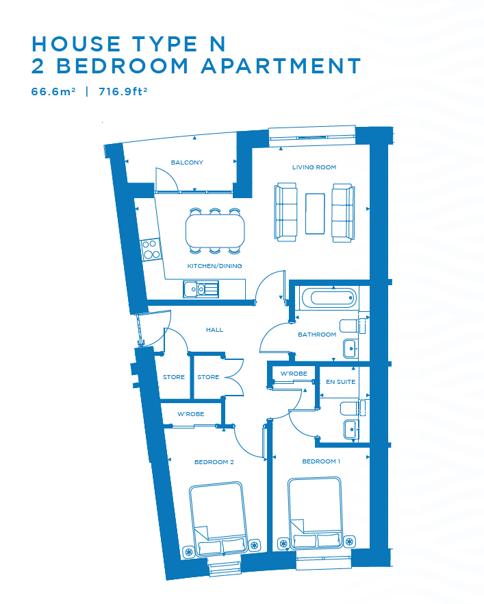 Spanning over 716sqft , this apartment benefits from 2 generous sized bedrooms, designer kitchen and bathrooms.