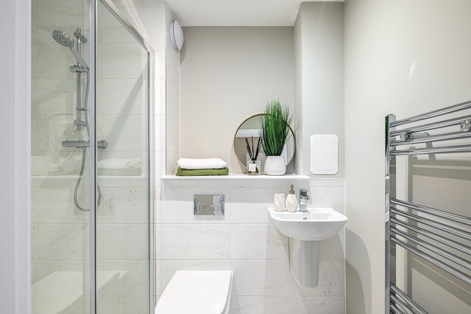 The development is Edinburgh’s first operational net zero carbon housing development, and the homes are some of the most energy efficient anywhere in the country. Advanced build methods will ensure the homes stay warmer for longer with an EPC rating up to 94 (A), whilst they are entirely free of fossil fuels. Boilers and water storage have been removed from the property with space heating and hot water services instead served by a one, centralised source – commonly known as district heating system – complete with 10, industrial-scale air-source heat pumps. A solar PV panel system is also installed on the roof of the apartment block which serves each property and will help offset energy costs.