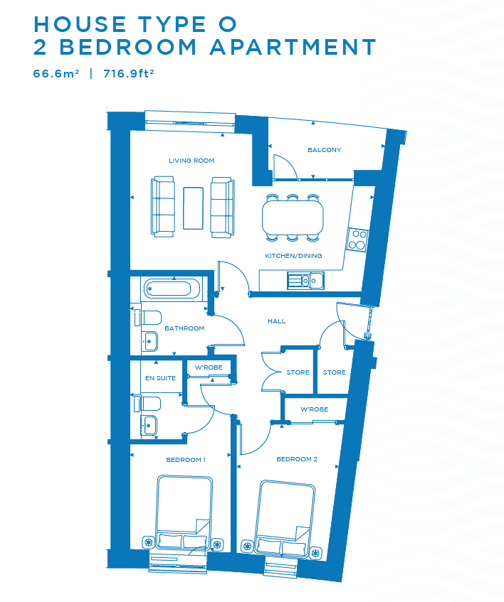 Plot 323 is located on level 2 of Core 3 in the development and offers a light and airy haven, spanning over 717 sq ft.
